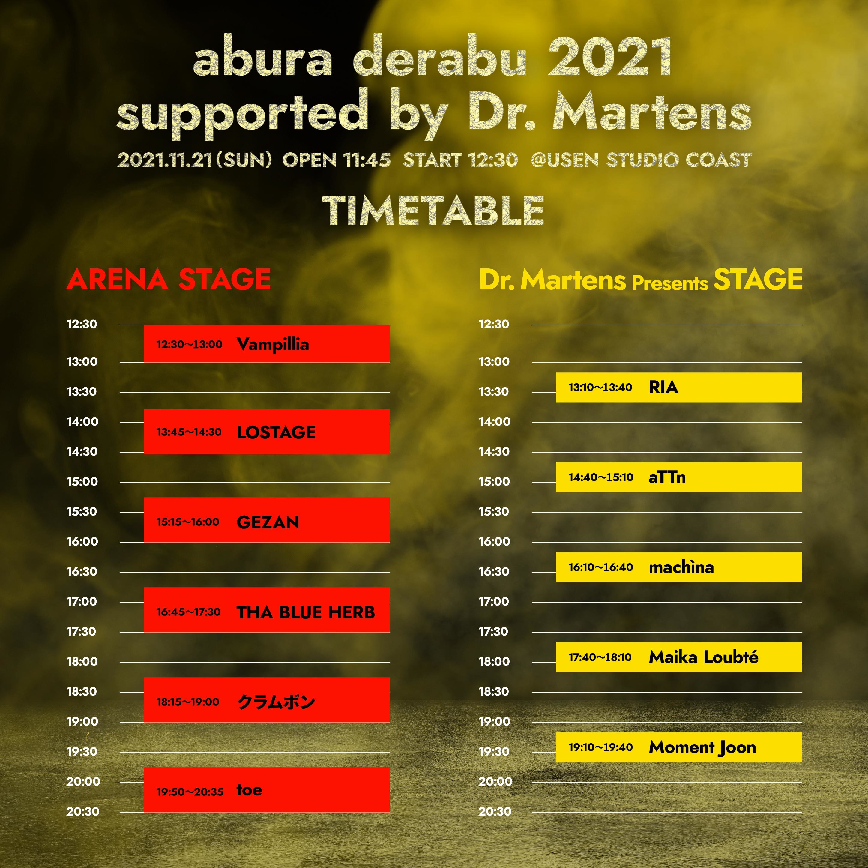 『abura derabu 2021 supported by Dr.Martens』タイムテーブル