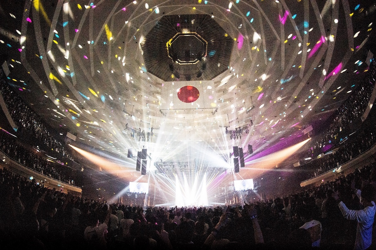 これが本当に特別な、待ちに待った夜であることは誰の目にも明らかだった。両脇の巨大ヴィジョン、ステージ後方のLED CG映像、さらにド派手なムービングライトや上下使いのミラーボールが次々と楽曲に華を添える。指定席で座っていても十分に楽しい演出がたっぷり用意されていた。