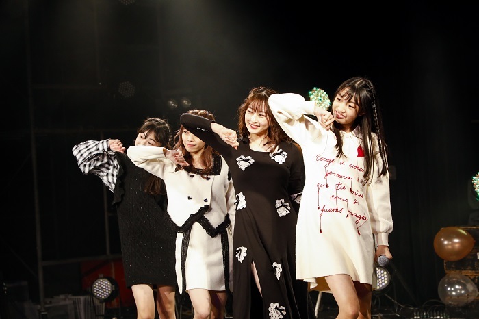 その後、B.O.L.Tのタオル曲こと「Catch The Rainbow」を披露し、会場はクラブフロアさながらの盛り上がりを見せる。「Please Together」ではそれぞれのパートをメンバーがその場でくじ引きして決めるなど、パーティー色満載の流れは止まらない。続くパートでは、高井千帆からメンバーへのサプライズが用意されており、「スマイルフラワー」では白浜あやに、「足音」では青山菜花に、「スーパースター」では内藤るなへと“いつもありがとう”というメッセージが込められたプレゼントが贈られ、なんとこのパートはパーティーにおける“おもてなし”パートということが明らかに。そして楽しいパーティーには終わりはつきものということで、「夕日の後の夜に」「まわりみち」と続けて、一夜限りのパーティーでは合計12曲が披露された。