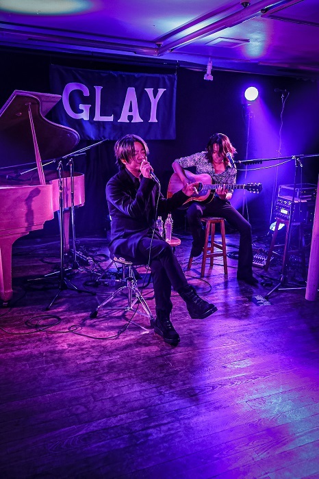 ライブはTERU、TAKUROが会場に入ってくるシーンから始まり、当時書かれた「GLAY」の文字がまだ壁に残っているのを懐かしく眺めている姿が印象的であった。