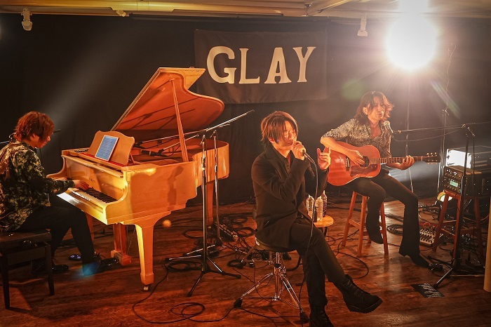 2020年、新型コロナウィルスの感染が拡大する最中に始まったTERUプロデュースの配信ライブ「LIVE at HOME」。そのVol.7を「函館あうん堂ホール」からTERU、TAKURO、村山☆潤の3名で、2021年11月22日(月)、GLAY appより配信した。