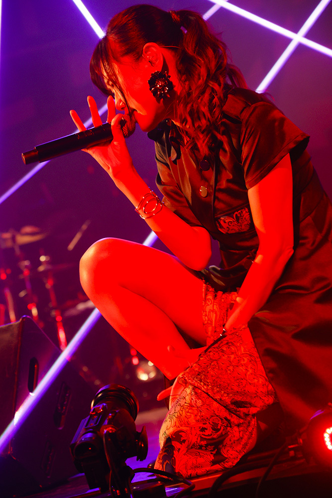 そして「Blast!」のアウトロから引き継ぐように次の曲へ。照明がサイケデリックなカラーのものに切り替わり「そんなもんじゃねえだろ!」との発声とともに披露したのは「分身」。パワフルでありセクシーな彼女の歌声に、観客は釘付けになる。舞台上に座り混み、すごむような仕草で歌う姿すらも様になる存在感。