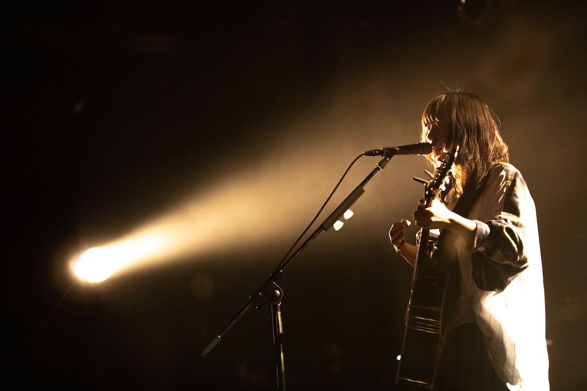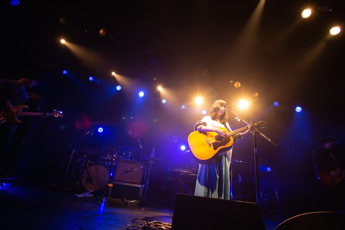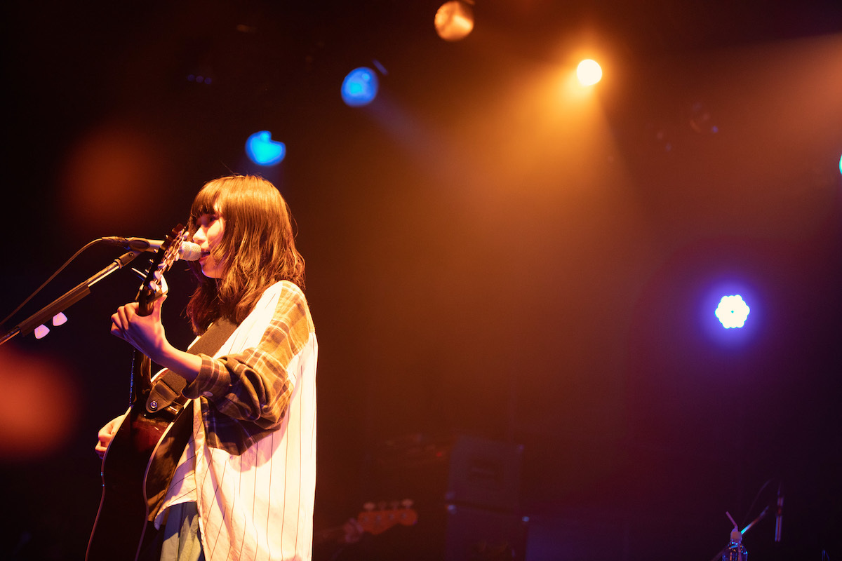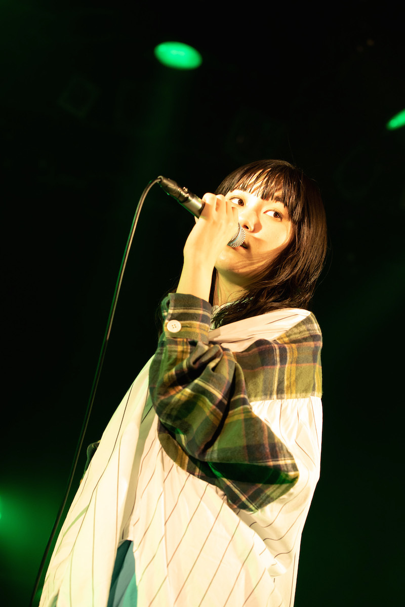 10代の間ずっと綴ってきた孤独というテーマにひと区切りつけ、「誰かがいる」という次のテーマに向かって最初に作った曲「曖昧なままでもいいよ」まで駆け抜けると、そこで初めてのMC。「はじめまして」という挨拶から彼女は始めて、「自分の曲を聴いてくれたりMVの再生回数を増やしてくれたりする人が本当に実在するんだということをなかなか実感できなかったけれど、こうしてたくさんの人がライブに集まってくれているのを目の当たりにして本当に嬉しい」と話した。「はじめまして」の気持ちはおそらくは客席を埋めたファンも同じだったはずで、だから彼女がそんな話をしたことでお互いが抱え合っていた緊張はほぐれて、そこからは控えめに、あくまでも控えめにではあるけれど、曲に合わせてファンも体を揺らすようになっていった。