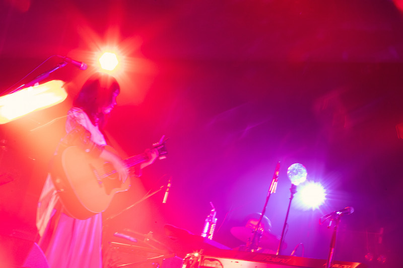 アンコールは、溌剌としてデビュー曲「愛を叫んでみた」を披露した後、最新リリース『二人なら – ep』から最新曲2曲を演奏。それはまさしく彼女の音楽的な新しい一歩であって、だから最後の曲「二人なら」のクライマックスでゆっくりと満ちてきて彼女を照らした照明の光はもちろん夕暮れ色ではなかった。