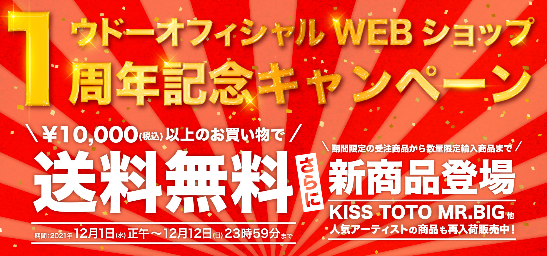 本日・12月1日をもって開設1周年を迎えた「UDO OFFICIAL GOODS SHOP」が、10,000円(税込)以上商品を購入すると配送料が無料になるキャンペーンを本日から12月12日(日)までの期間限定で開催する。