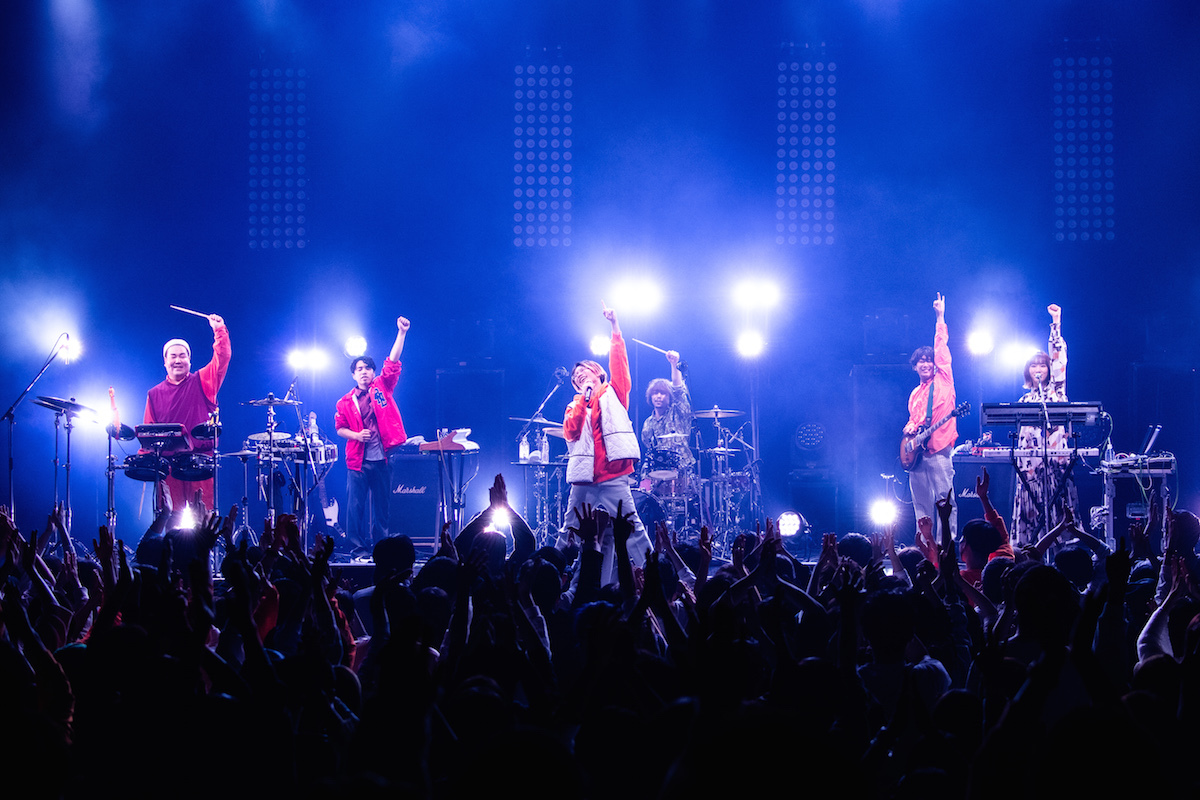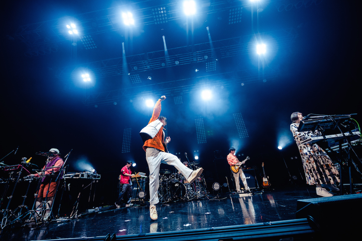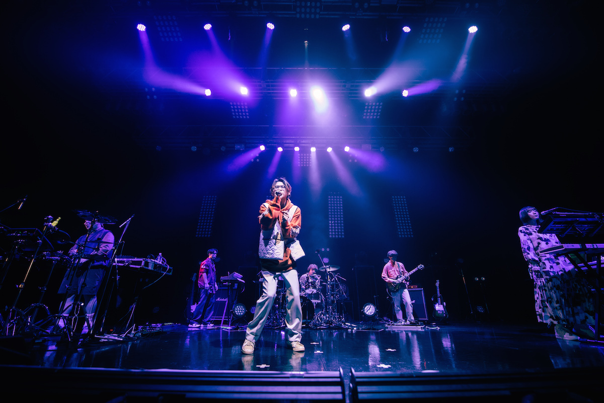 リリースされた頃とは違う意味を纏いながら、同時に若い社会人リスナーにとっては通奏低音のような「ひとりの夜を抜け」のデフォルトで存在するしんどさと、でも<好きな自分を諦めたくはないな>というリアリティ。どの曲でもなんらかのリリックが心に刺さりながら、ステップを踏み、身体を揺らすことは止められない。ファンのダンスの自由度を上昇させたのは、生演奏のスタイルに拘泥しない演奏スタイルのブラッシュアップが最大の理由だろう。柴田昌輝(Dr)のドラムソロがEDMのドロップのカタルシスのように感じられるフレージングだったり、山浦聖司(Ba)のシンセベースが、より奥行きのあるライブサウンドを下支えしていたり、ラミ(Per)の操るMPCプレーヤーがトリッキーな「Superfine Morning Routine」のリフを堪能させてくれたり、ジャンルは違うが、臨機応変な楽器の抜き差しはまるでジェイムス・ブレイクの初見時の印象、そしてそれ以降のエレクトロバンドの印象に近い。そして放たれる音像はハウシーだったり、ブレイクビート的だったりして、00年代のダンスアクトを彷彿させる。「Drawing!」のシンセの膨張感たるや……。快適に自我が消えていく。
