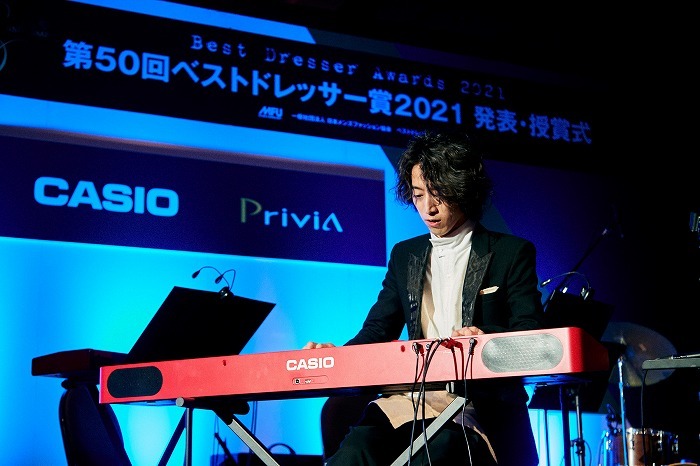 ベストデビュタント賞は、若手クリエイターを応援する趣旨のもと、デビューを飾った新人クリエイターやアーティストの中から、特にこの1年の活動が社会・文化・業界・一般の方々に支持され、影響を与え、将来を期待される人たちが各分野で選出される。表彰式で角野は、カシオの電子ピアノ「Privia(プリヴィア)PX-S1100」を使ってミニライブを開催。圧巻のパフォーマンスに招待客らも酔いしれていた。