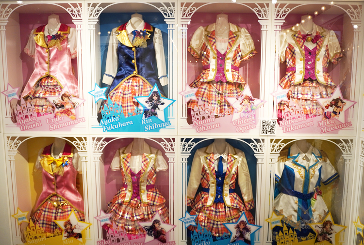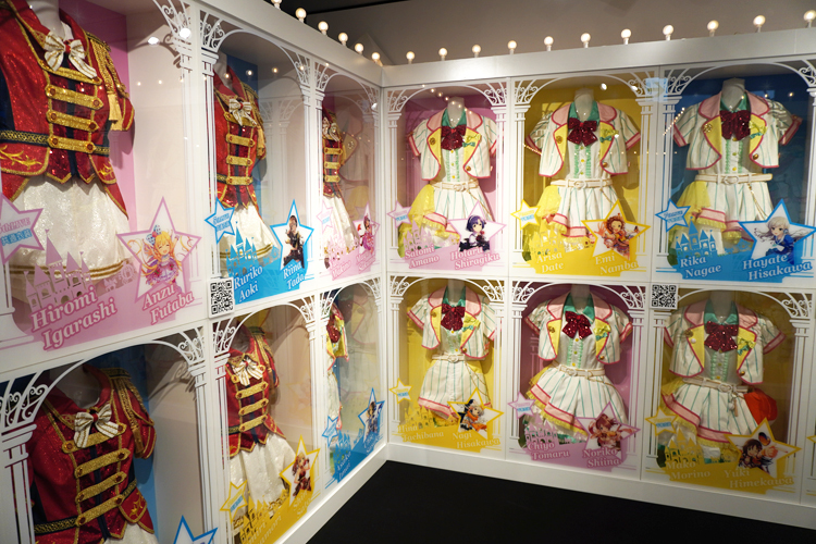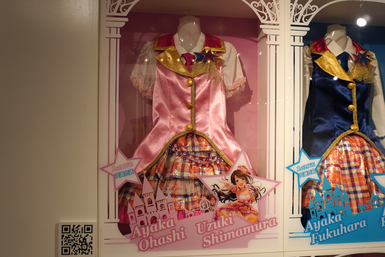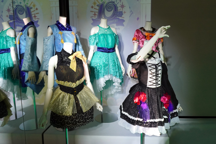 「Ⅲ.歴代衣装展示ゾーン」の展示の一部。1st~3rdLIVEの共通衣装(共通で着用されている衣装のこと)。