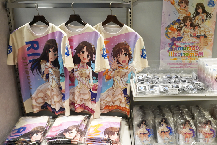 充実した物販コーナー。Tシャツなどのデザインがカラフル。