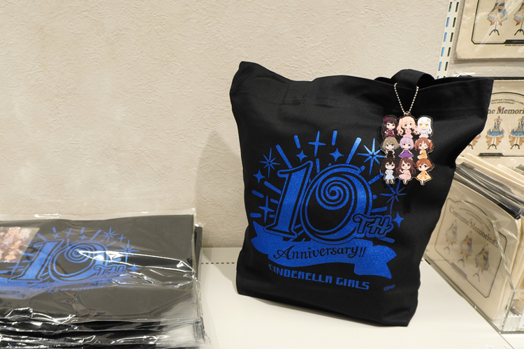 ビッグアクリルキーホルダー付きトートバッグ。「10th ANNIVERSARY」の文字が入っていて記念になる。