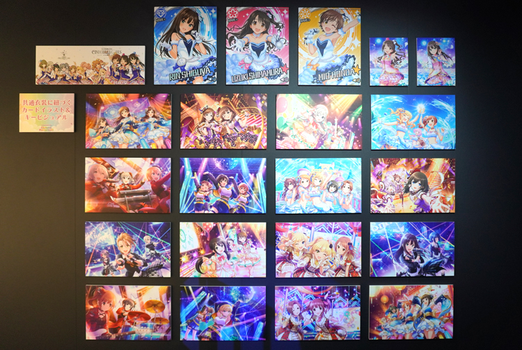 会場風景。共通衣装に紐づくカードイラストやキービジュアルの数々。