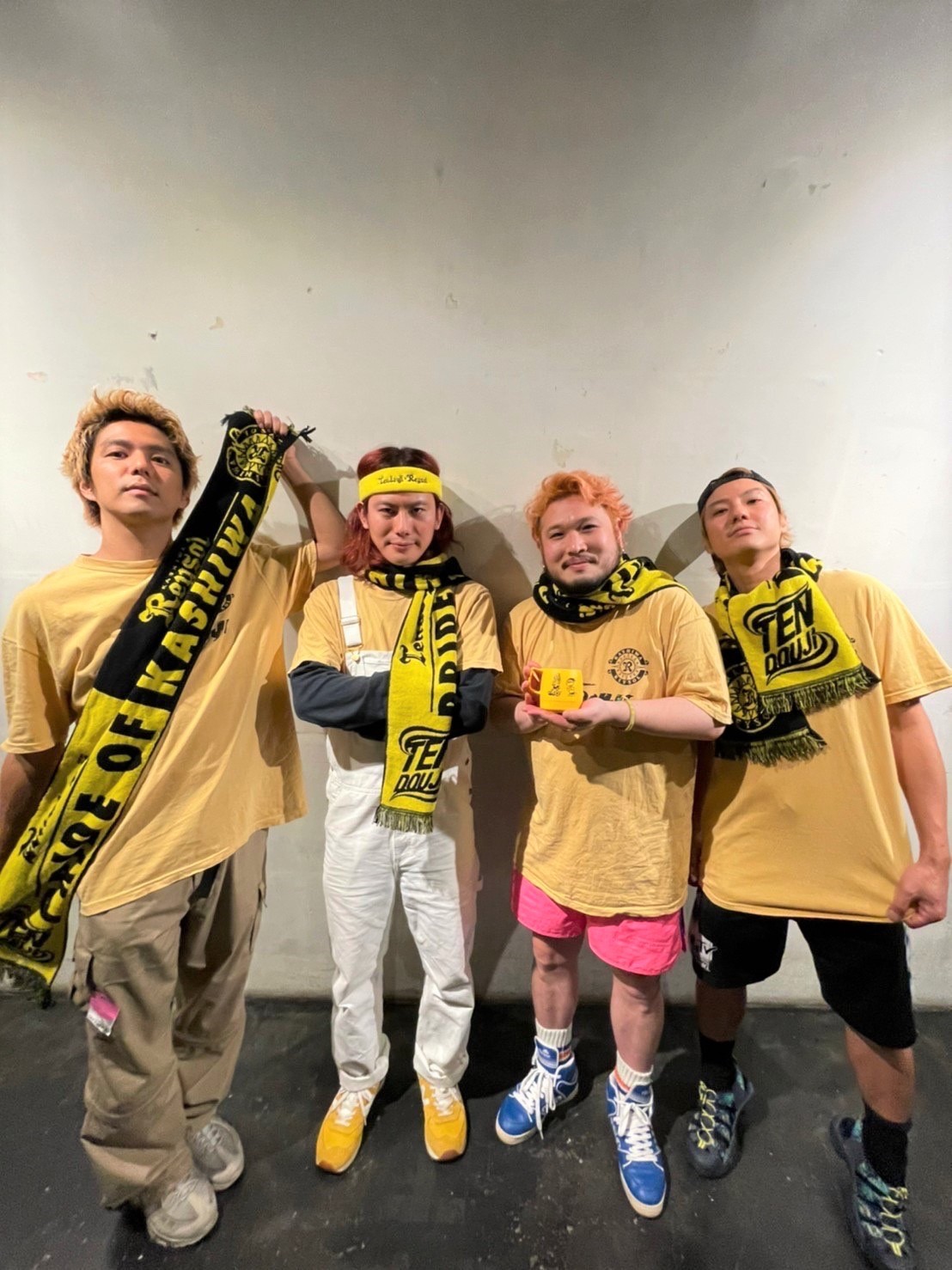 そして、Jリーグチームの柏レイソルとTENDOUJIのコラボグッズが発売。TENDOUJIの地元千葉・松戸のとなり町に本拠地を構え、子どもの頃からメンバーがずっと応援してきた繋がりや、かねてよりレイソルの公式マスコットレイくんとの交流があり実現。