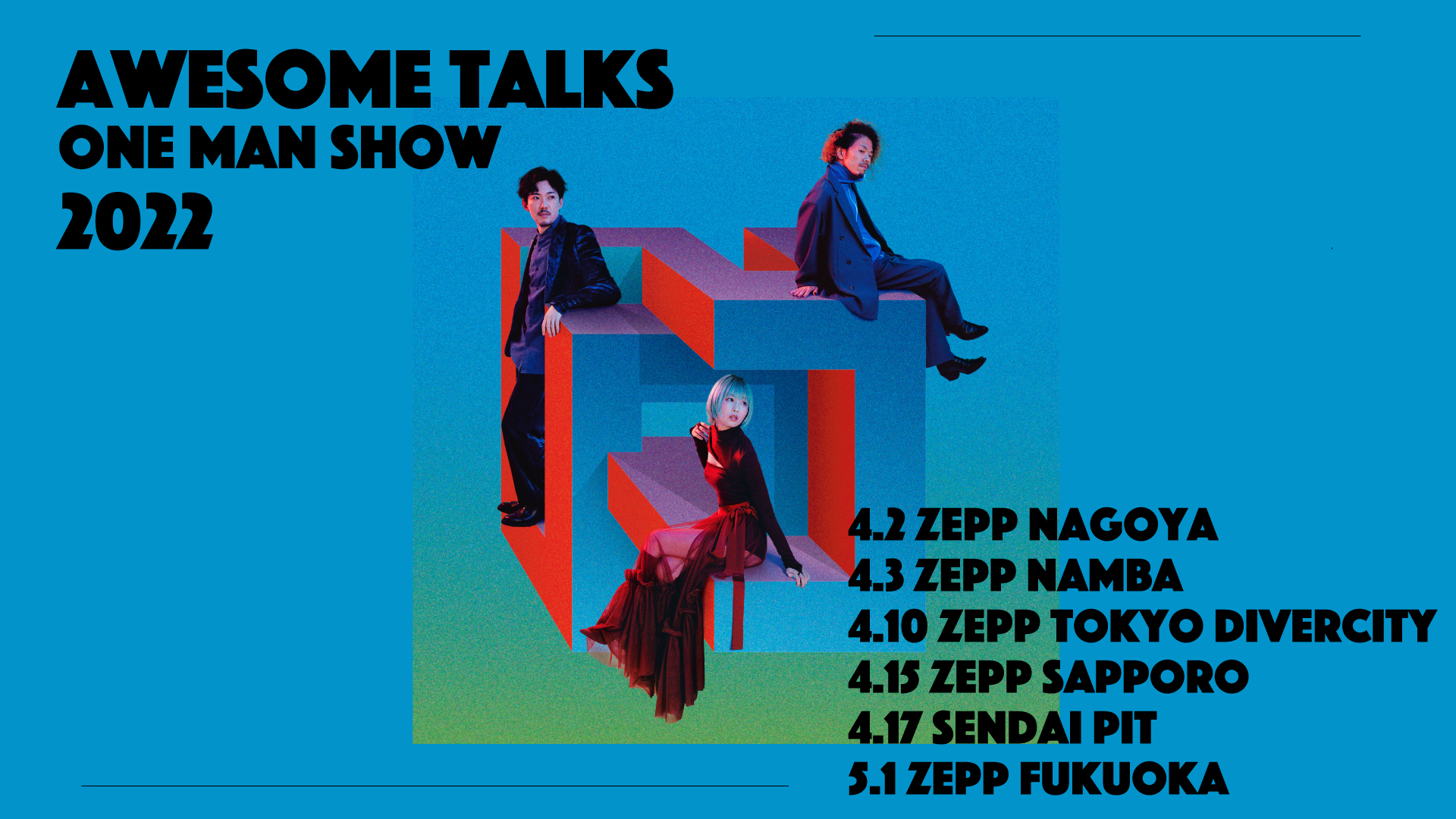 合わせて、来年4月から全国6か所を巡るツアー『Awesome Talks One Man Show 2022』の開催も発表した。4月2日のZepp Nagoyaから、大阪、東京、札幌、仙台、福岡を回る。