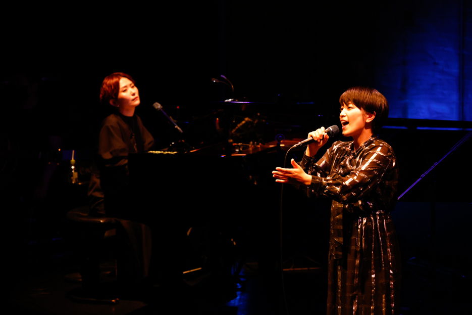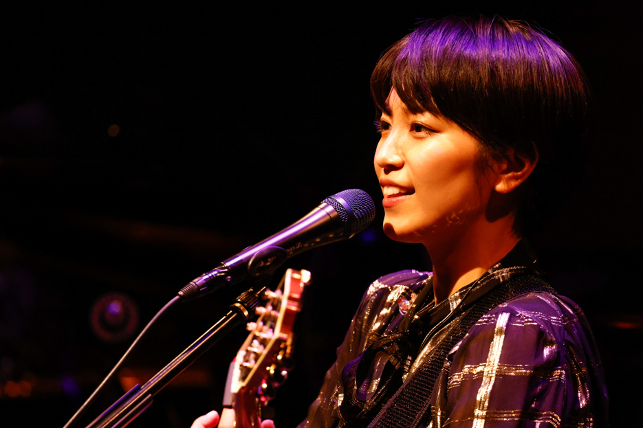 最初のMCでは、久々にお客さんの前で歌える喜びを語りながら、ステージと客席の距離の近さに「めっちゃ肉眼!」と言って驚いてみせる。そのくらいよく見えると、お客さんが泣いていたりする姿を見て、自分もうるっときてしまうことがあるのだそう。また、お酒を飲みながら、お食事しながら音楽を楽しんでもらう形式のライブができるようになったことについて、お客さんと一緒に大人になったんだなぁとしみじみと語る。