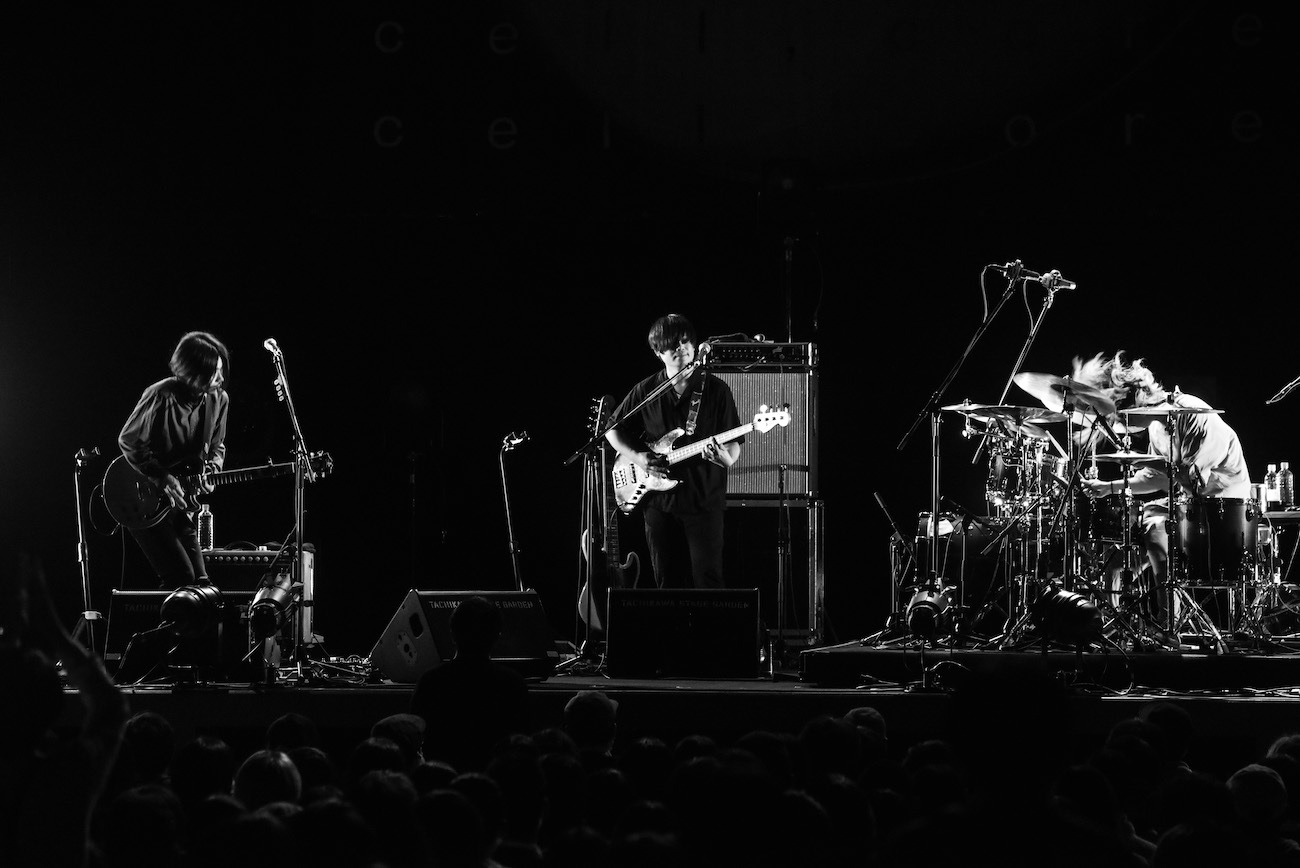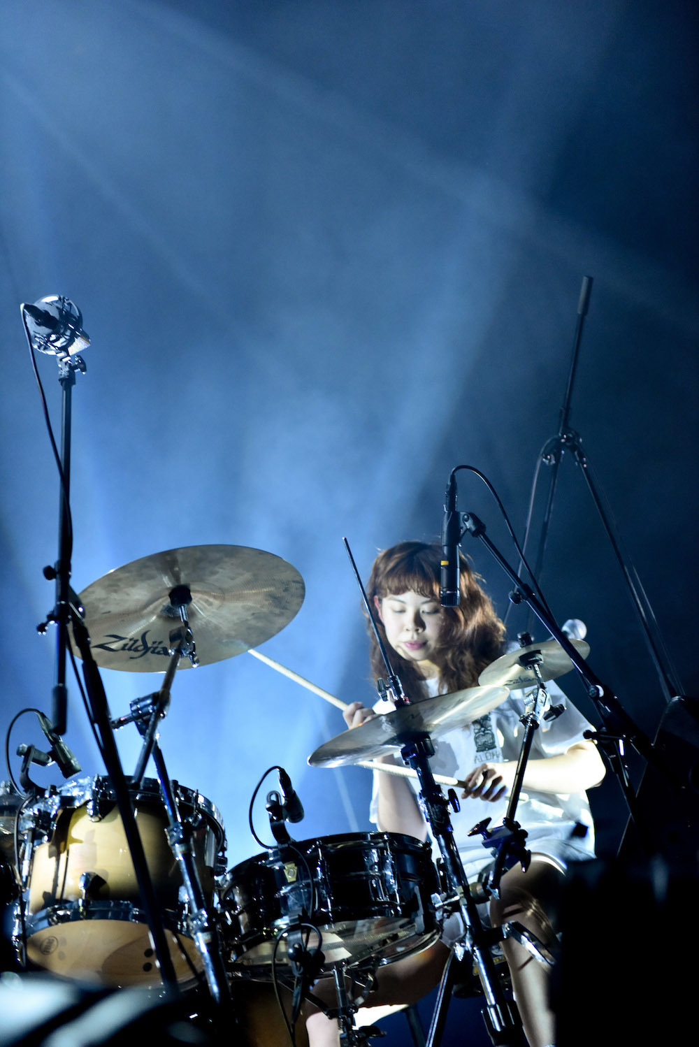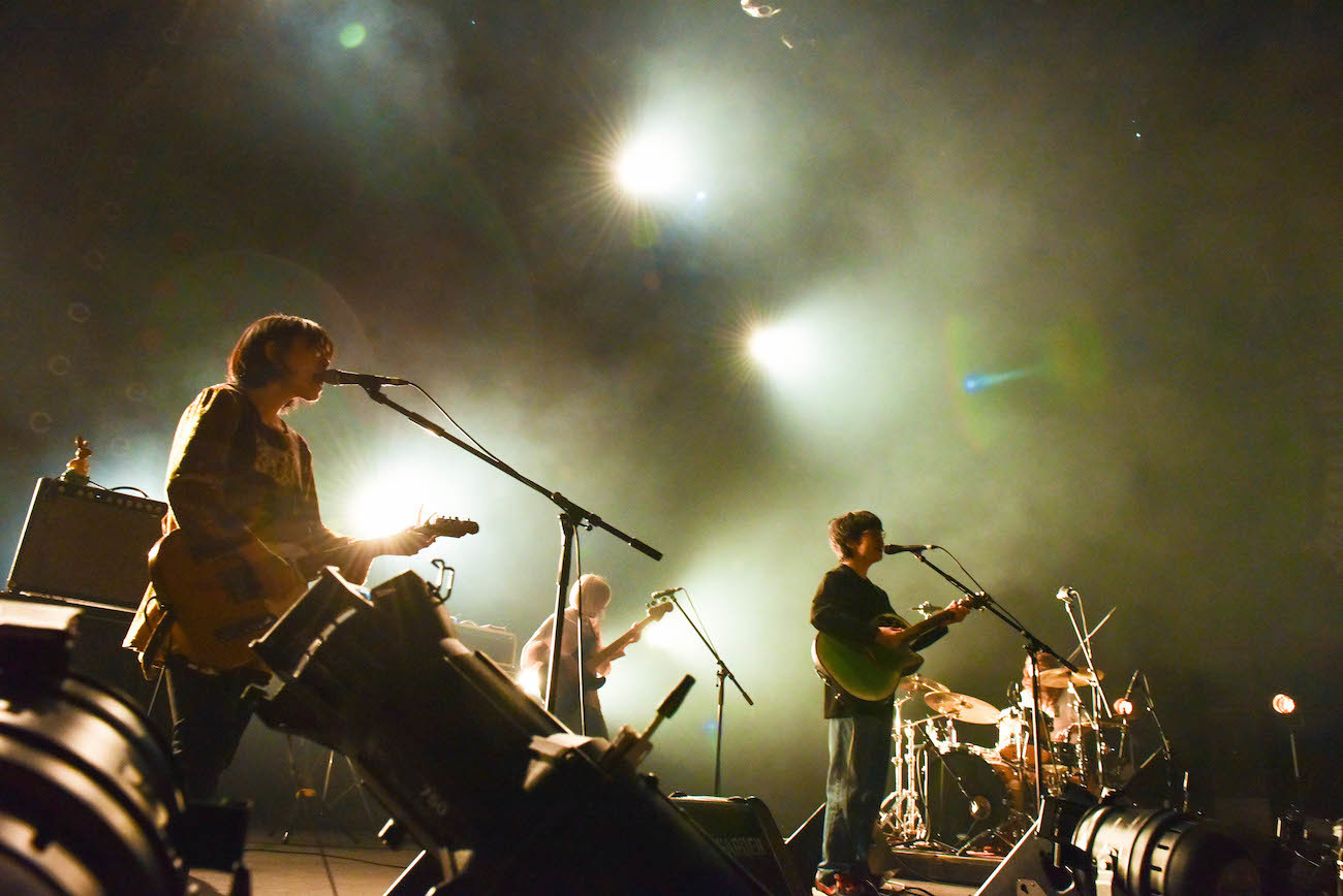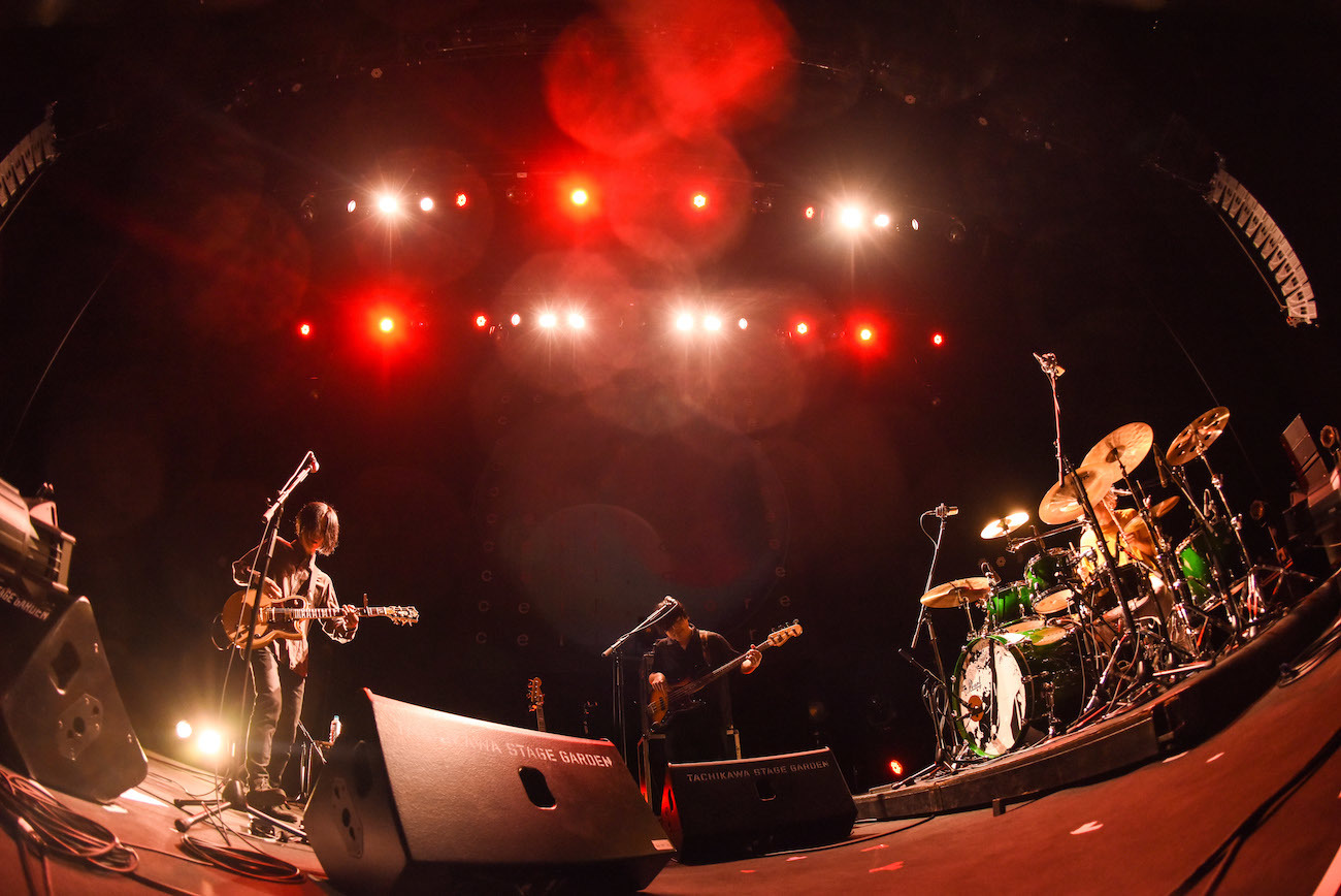 圧巻のアンサンブルに大きな拍手が送られる中、波多野が「すごく楽しみにしてきました」と挨拶。暗黒からパッとサビで光が指すような「聖者たち」、山口大吾(Dr)が刻むヒップホップ的なキック&スネアと波多野の架空のフォークロア的なメロディラインが特徴的な「ニムロッド」、山口の鼓動のような二連のキックが印象的な「懐胎した犬のブルース」。1曲ごとに物語に没入させる精緻な演奏を聴かせる。演奏の緊張感からギャップを生む山口の素っ頓狂とも言える(ファンにはお馴染みだが)MCと煽りを経て、ここまでもかなり攻めたセットリストだったが、最終兵器めいた怒涛のリズムチェンジやせめぎ合いが立体的に展開する「旧市街」をラストに演奏。変な喩えだが銃撃戦を疑似体験したようにあっけにとられているうちに3人はステージを後にしていた。