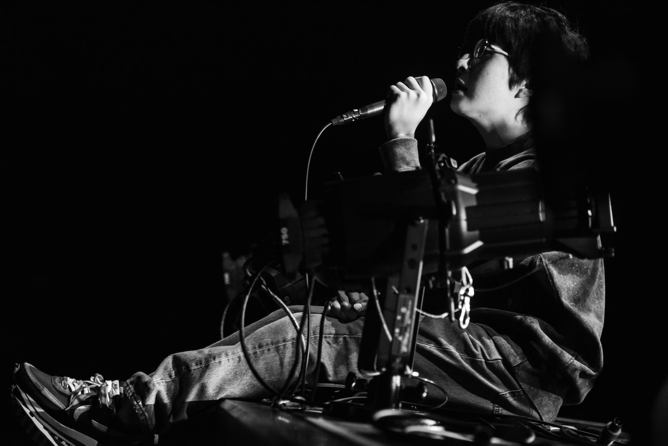 後半のMCを挟んで、2月2日リリースのニューアルバム『Face To Time Case』から、初披露の「Helix」をパフォーマンス。さらに代表曲「Samidare」で全身を駆使した弾き語りを届け、エレキに持ち替えての「Video of Travel」では声ネタのリフレインや変化していくビートが徐々にカオスの色合いを強める。ラストはエレキの響きを自在に操るバージョンの「夏至」。彼の脳内世界に迷い込んだ時間はあっという間だった。
