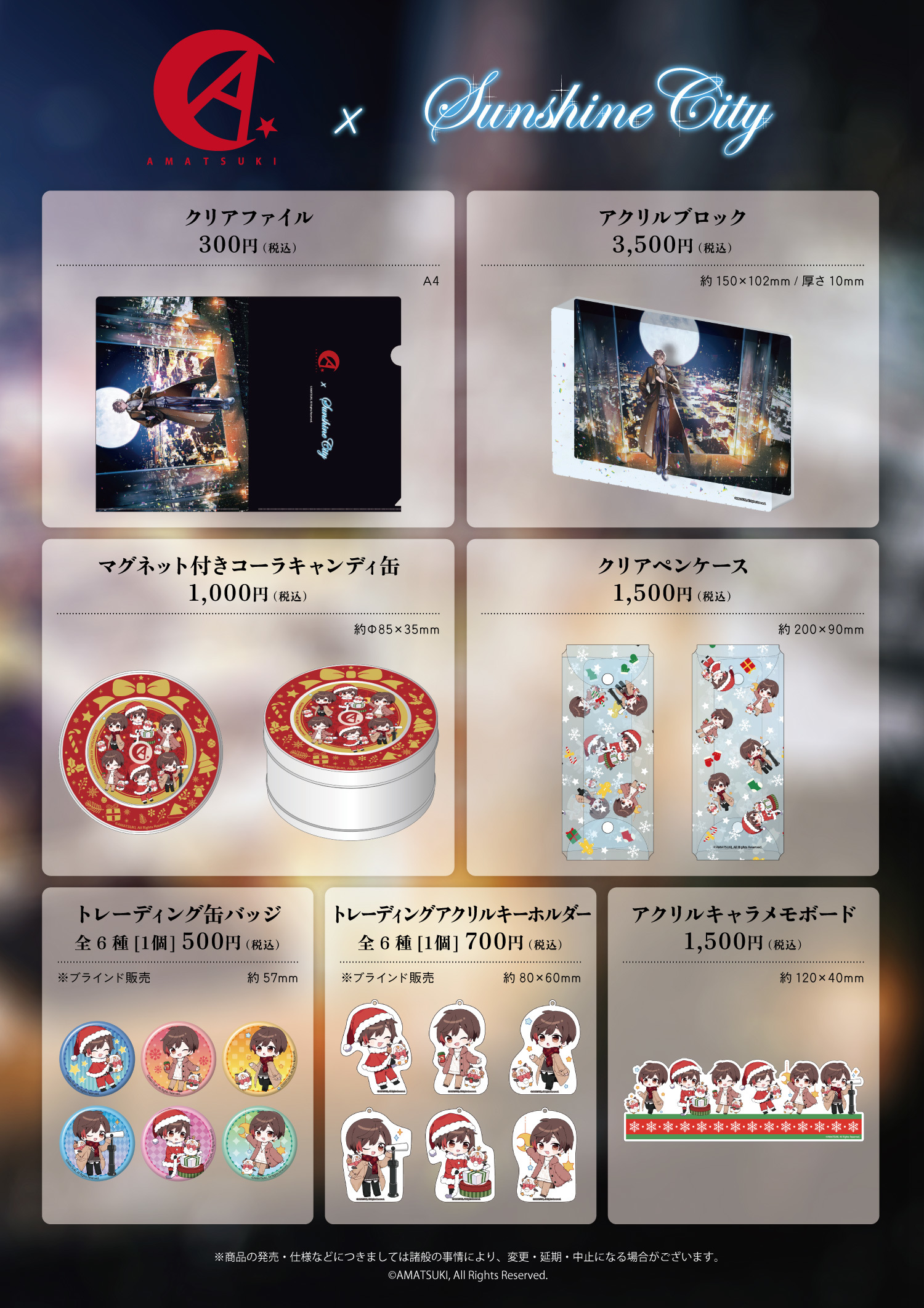 サンシャイン60展望台にて本イベント限定の描き下ろし等身大パネル・大型モニュメントの展示や、メッセージ動画の上映を実施します。また、描き下ろしイラストを使用した、透明感が幻想的な「アクリルブロック」や、クリスマスモチーフのミニキャラがかわいい「アクリルキャラメモボード」などコラボレーション商品が登場する。