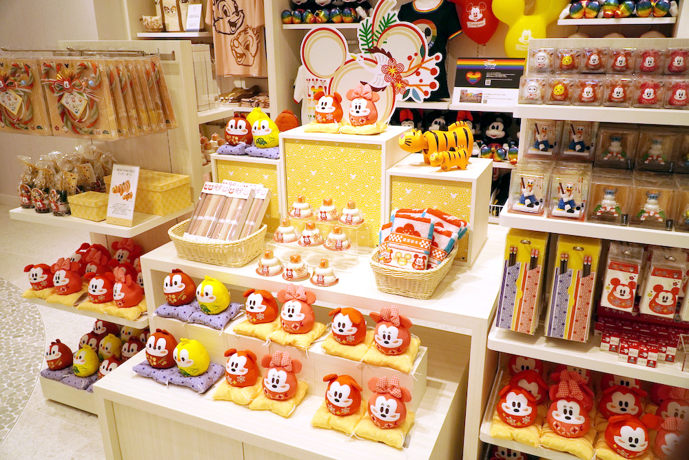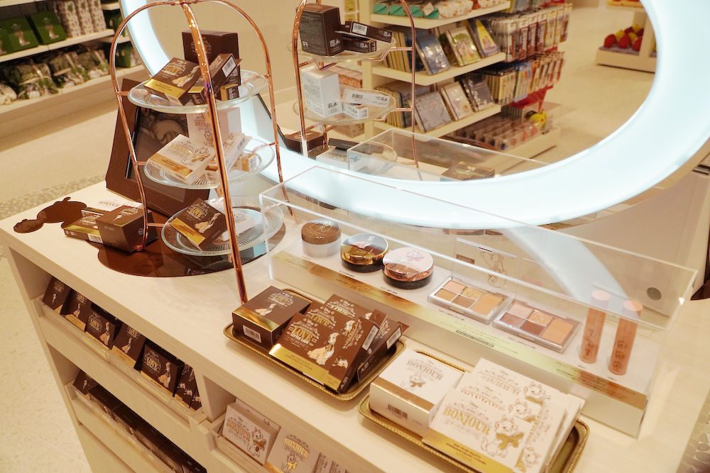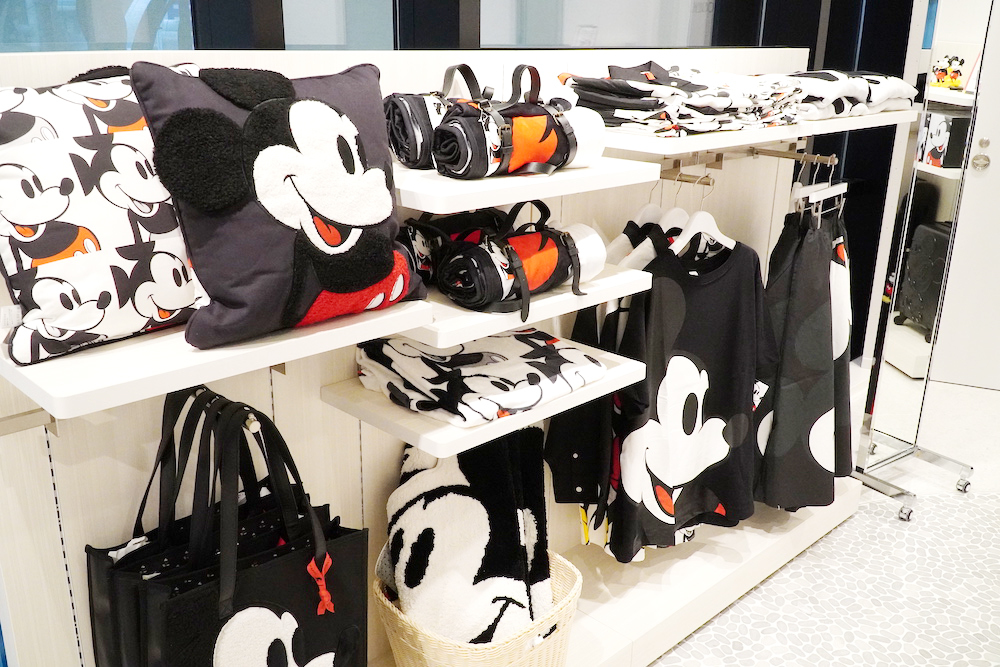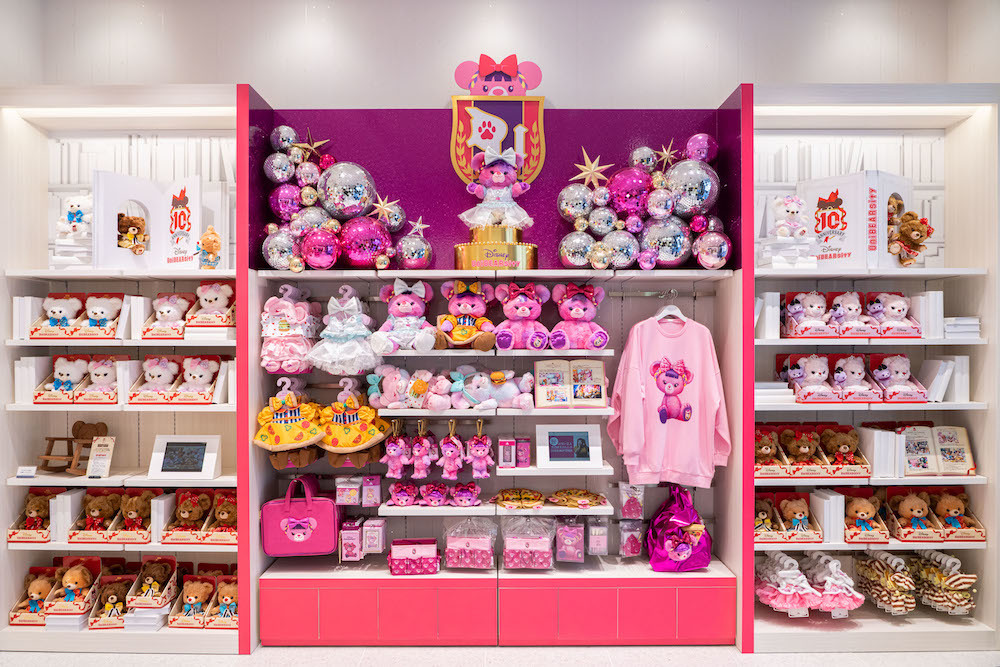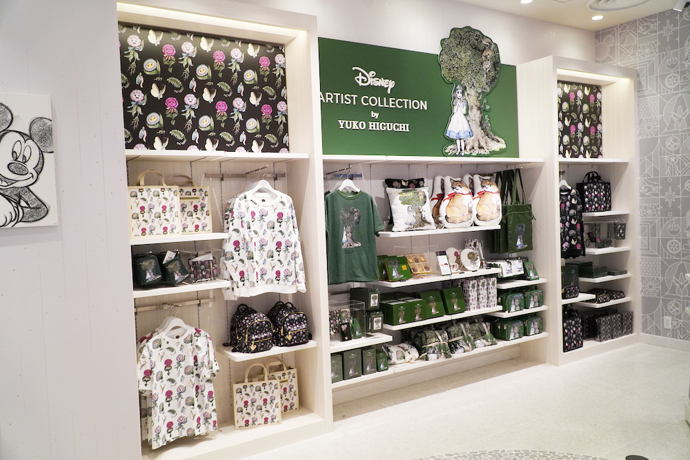 進んだ先にもたくさんの商品が! コスメや日用品、ぬいぐるみなどが色鮮やかに並ぶ。ここには、画家・絵本作家として活動するヒグチユウコと共同企画をしたコレクション「Disney ARTIST COLLECTION by YUKO HIGUCHI」や、渡辺直美が監修した「UniBEARsity(ユニベアシティ)」なども見受けられた。
