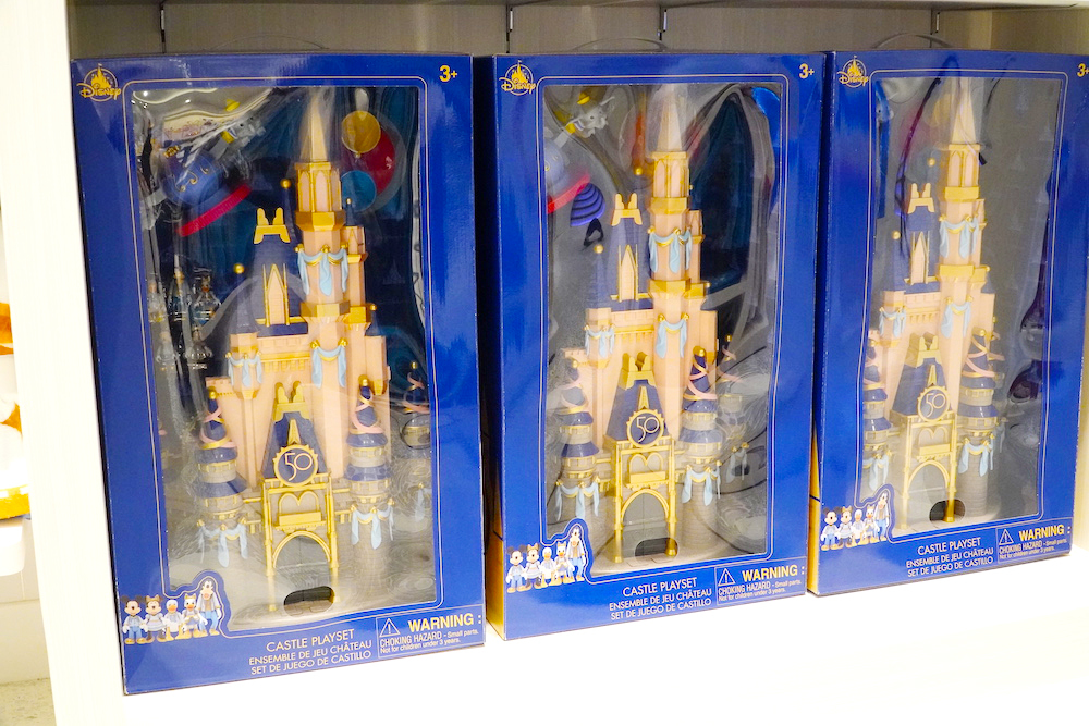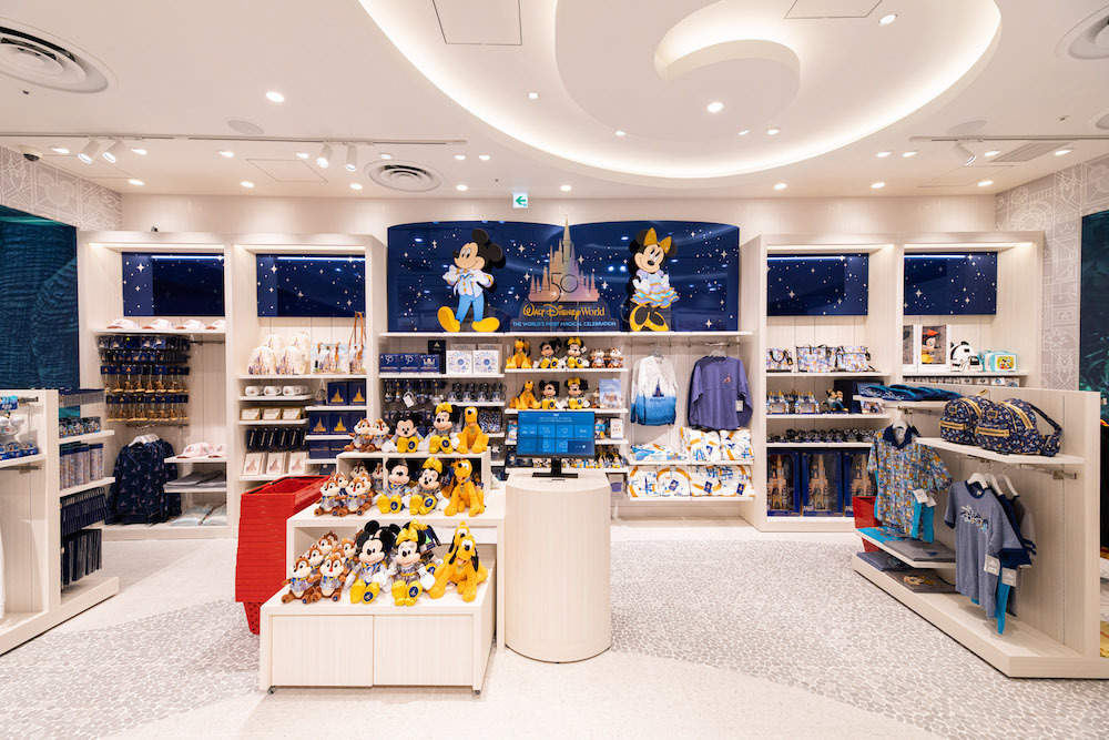 店内に入ってすぐには、右手にグランドオープンの商品、左手にはウォルト・ディズニー・ワールド・リゾート50周年記念グッズが。本ショップでしか購入することのできない「グランドオープン記念限定」のアイテムはここにまとめられているので、とてもわかりやすい(もちろん他のコーナーにも点在している)。