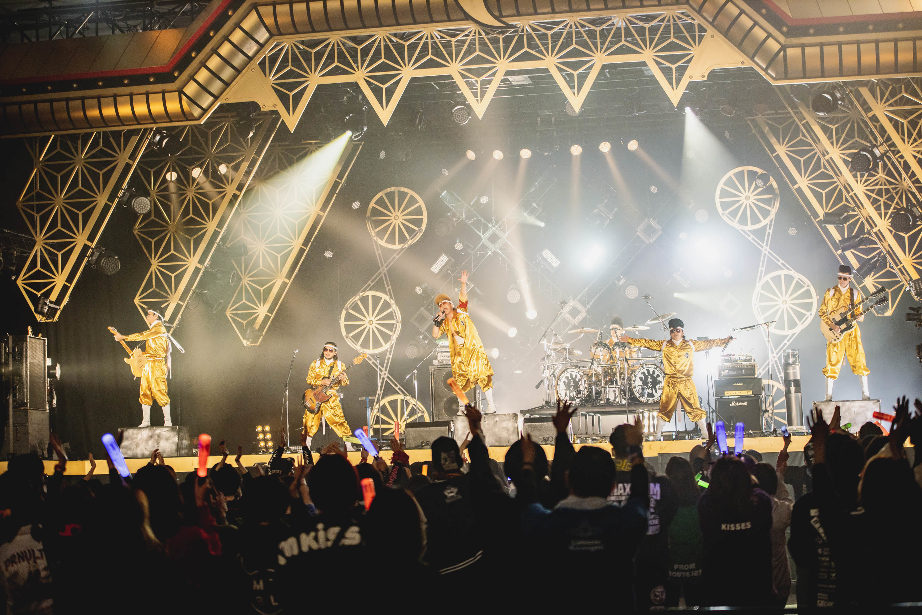 客席の様子を見たN∀OKIが「みんなええ顔してるやん!」と表情を崩したまま「響く都」がスタート。この曲の景色は本当に素晴らしい。暗闇の中で明かりに照らされているのは、楽しそうに腕を振り上げ、身体を揺らし、夢中で踊る観客たちの無数の笑顔。冬の夜に京都で繰り広げられる「響く都」のお祭り騒ぎを観ると胸が熱くなる。そして「D.A.N.C.E.」に続くというセットリストにも観客は大興奮。全力で踊り続けて堪能する。