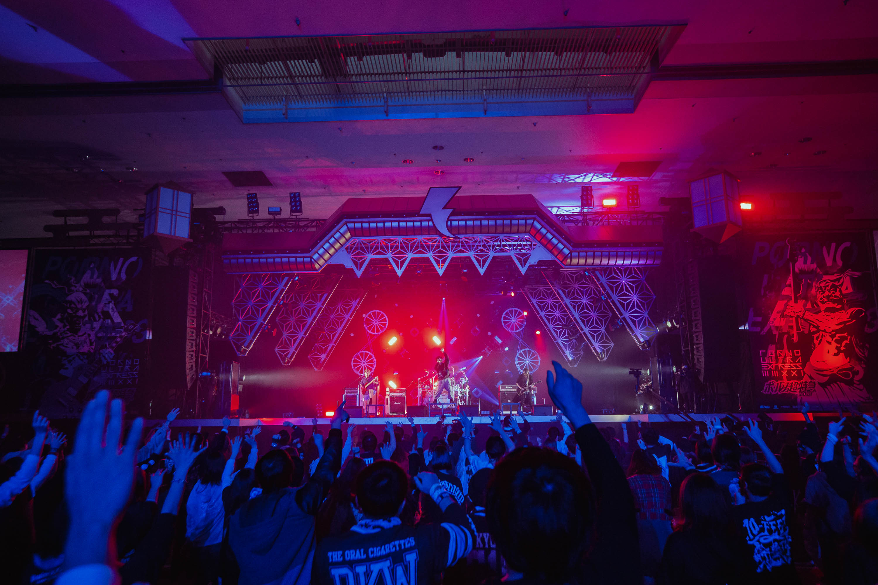 ステージに姿を現した4人が激しく音をぶつけ合った後、「STARGET」でライブをスタートさせたTHE ORAL CIGARETTES。ステージから襲いかかる凄まじいサウンドにオーディエンスは拳を振り上げて応戦。曲中で山中拓也(Vo.)が「ポル超よろしく!」と叫び、4人が一体となって音を一層厚くする。