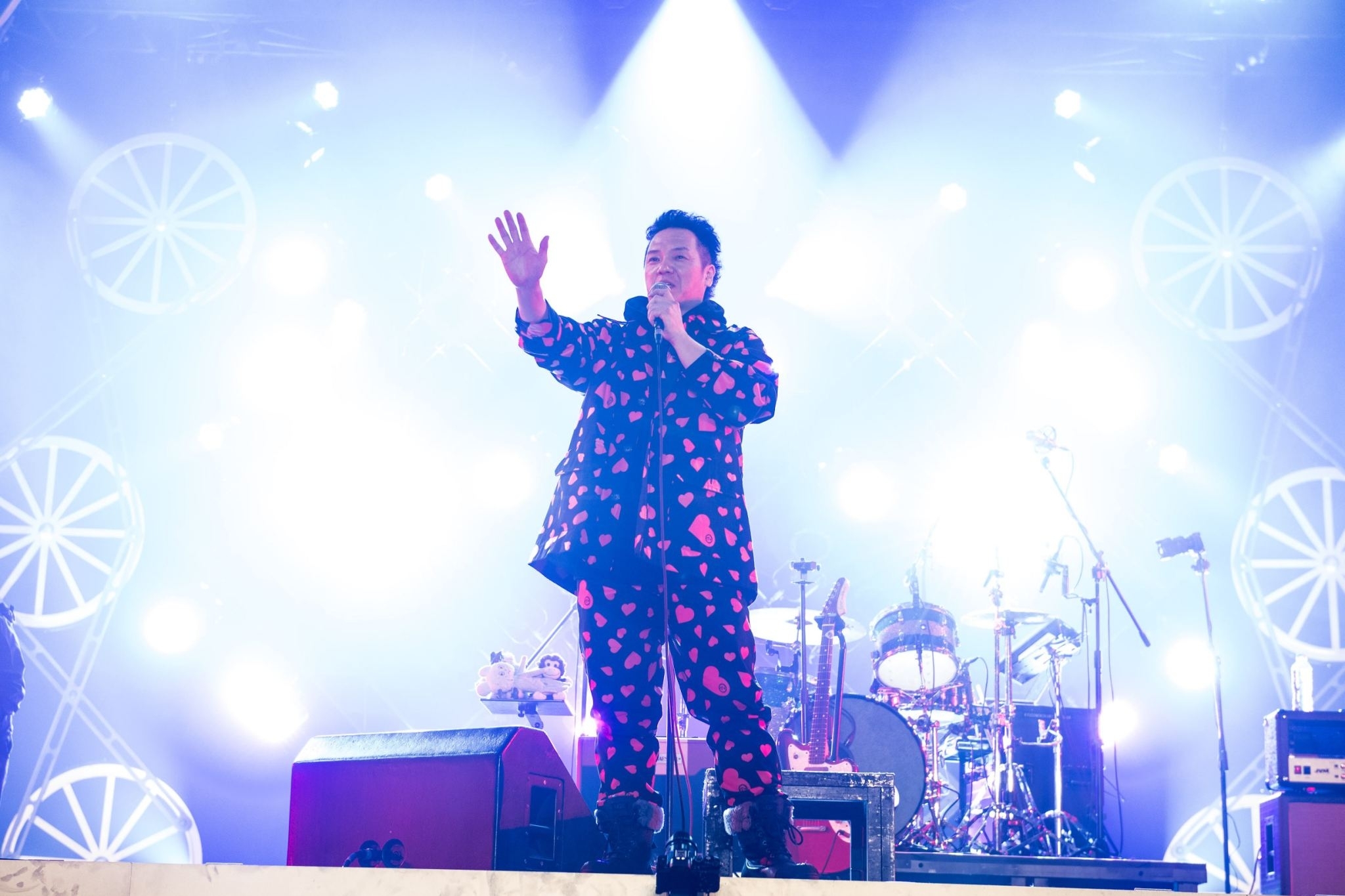 クラップの中、「房総魂」でエモーショナルにライブの幕を開けた氣志團。心揺らすサウンドにグッと魅了され、ぴょんぴょんと飛び跳ねる者、手を叩く者、腕を振り上げる者など観客はノリノリ。同曲の“当たり前じゃなかった/ここでまた会えること”という歌詞に胸を震わせつつ、一瞬で会場を支配するカリスマ的なステージングに舌を巻く。