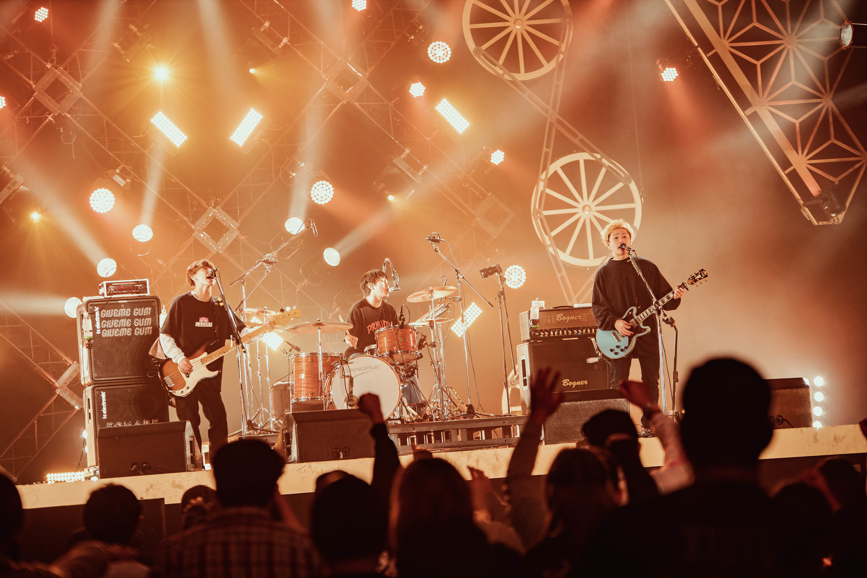 「今この瞬間、金閣ステージに立ってます!」と笑顔で叫ぶアマダ。「夢から覚めても」の大きなメロディとパワフルな演奏にオーディエンスは惹き込まれ、アマダの歌の力がカマタとオグラのコーラスで更に増幅されて鳴り響く。身体を揺らし、腕を振り、音楽を全身で味わう至福のひととき。