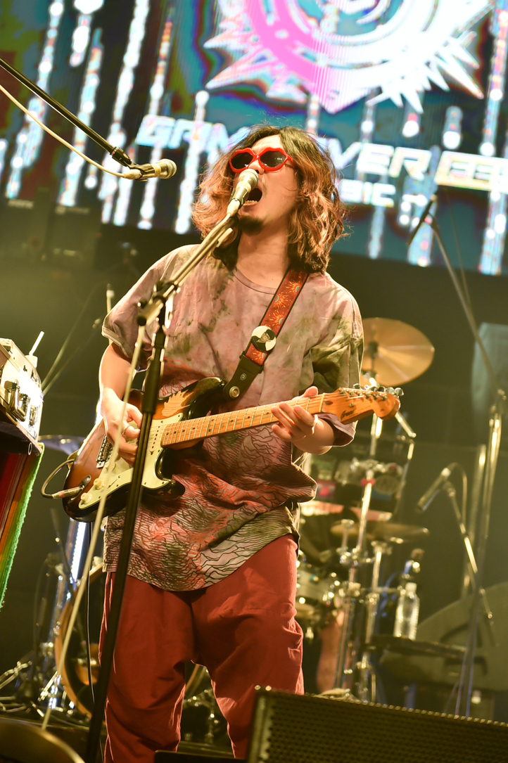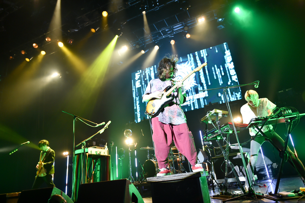 激しく美しいバンドアンサンブルで観る者の心を惹きつけると、会場中が心の中で掛け声を合わせた「T.Y.I.A.」と続き、ラストは「祭りには打ち上げ花火が必要だと思ってます」と始まった「JUST BE COOL」の突き上げるビートに飛び跳ねる観客が手を振り合わせ、デカイ花火を打ち上げる。会場が一気に活気づき、勢いが加速度的に増した、最高のトップバッターだった。