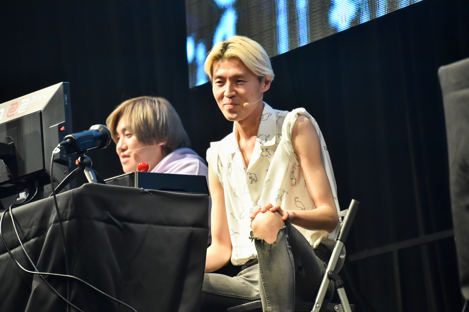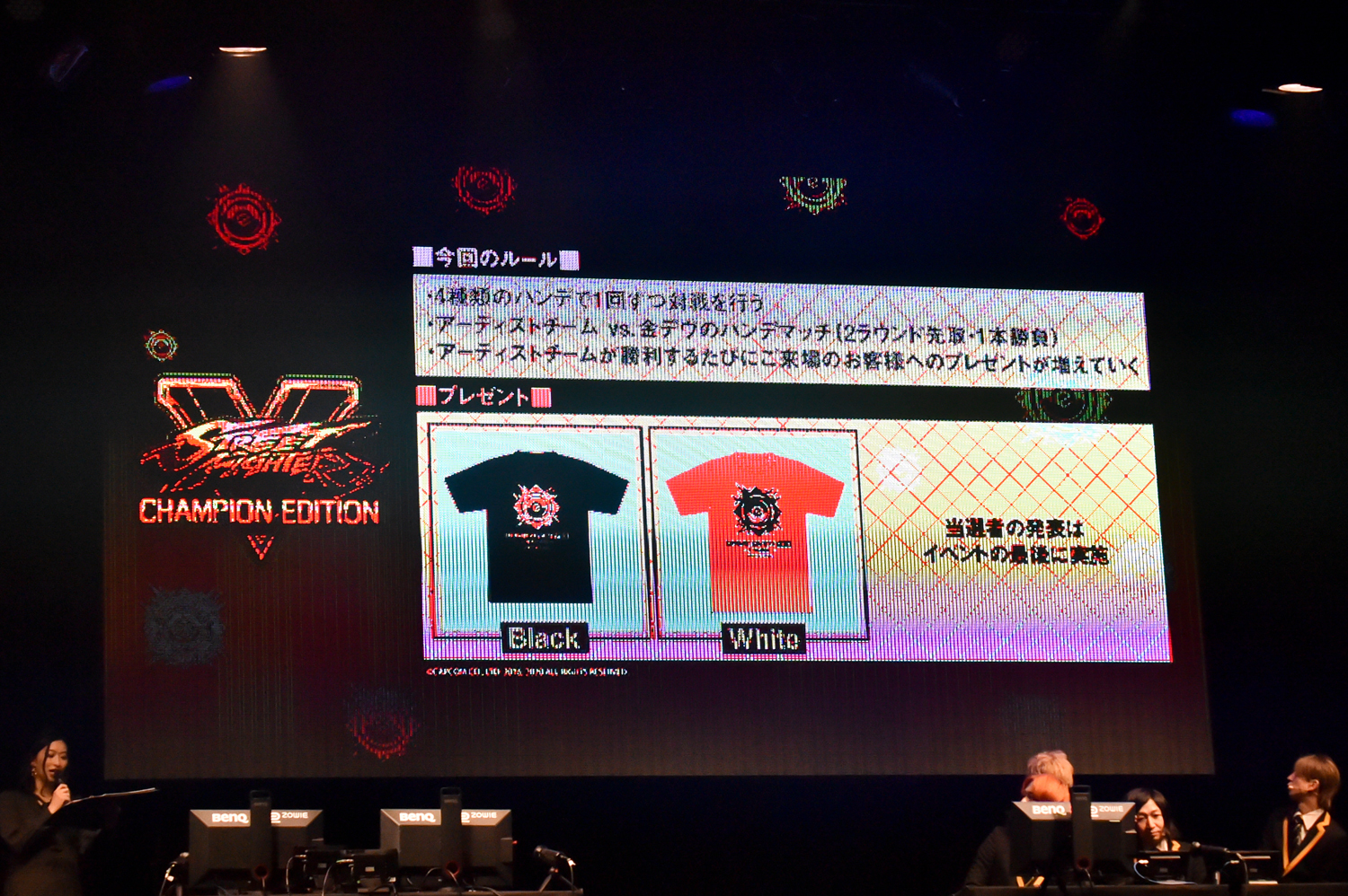 最後に20枚のTシャツを掛けて行われたエキシビジョン・マッチでは、助っ人としてプロゲーマーのふ~どが登場。スーパープレイが次々炸裂するハイレベルな闘いで観客を魅了しながら見事、金デヴをKO! 手に汗握る対決に、見守る観客も大興奮だった。
