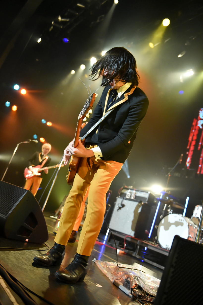 気持ちが高ぶる石毛のハイトーンボーカルとギター、シンセサウンド。岡本伸明(Syn/COWBELL/SHRIEK)はステージを飛び回り、賑やかで派手やかなステージに拍車を掛ける。