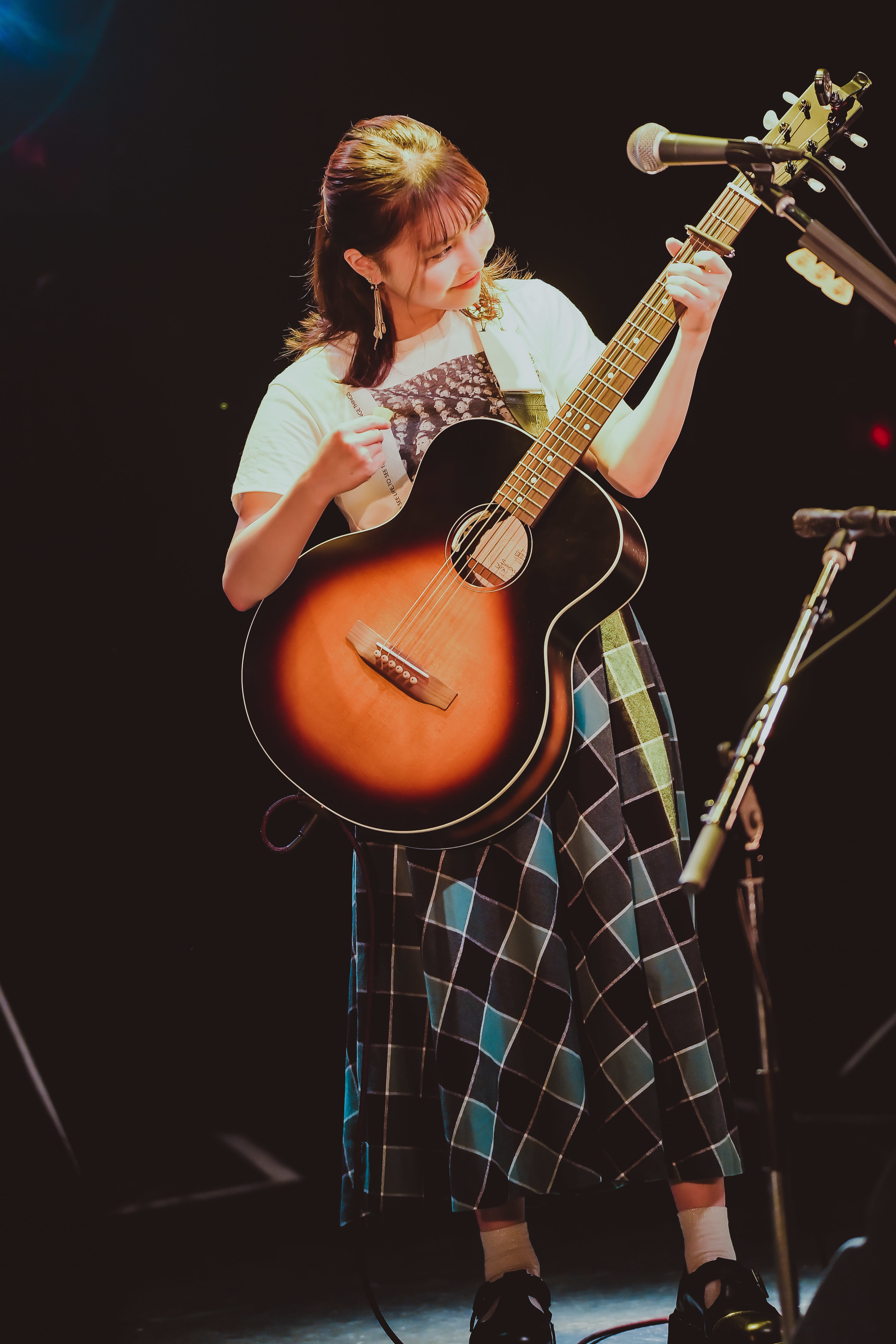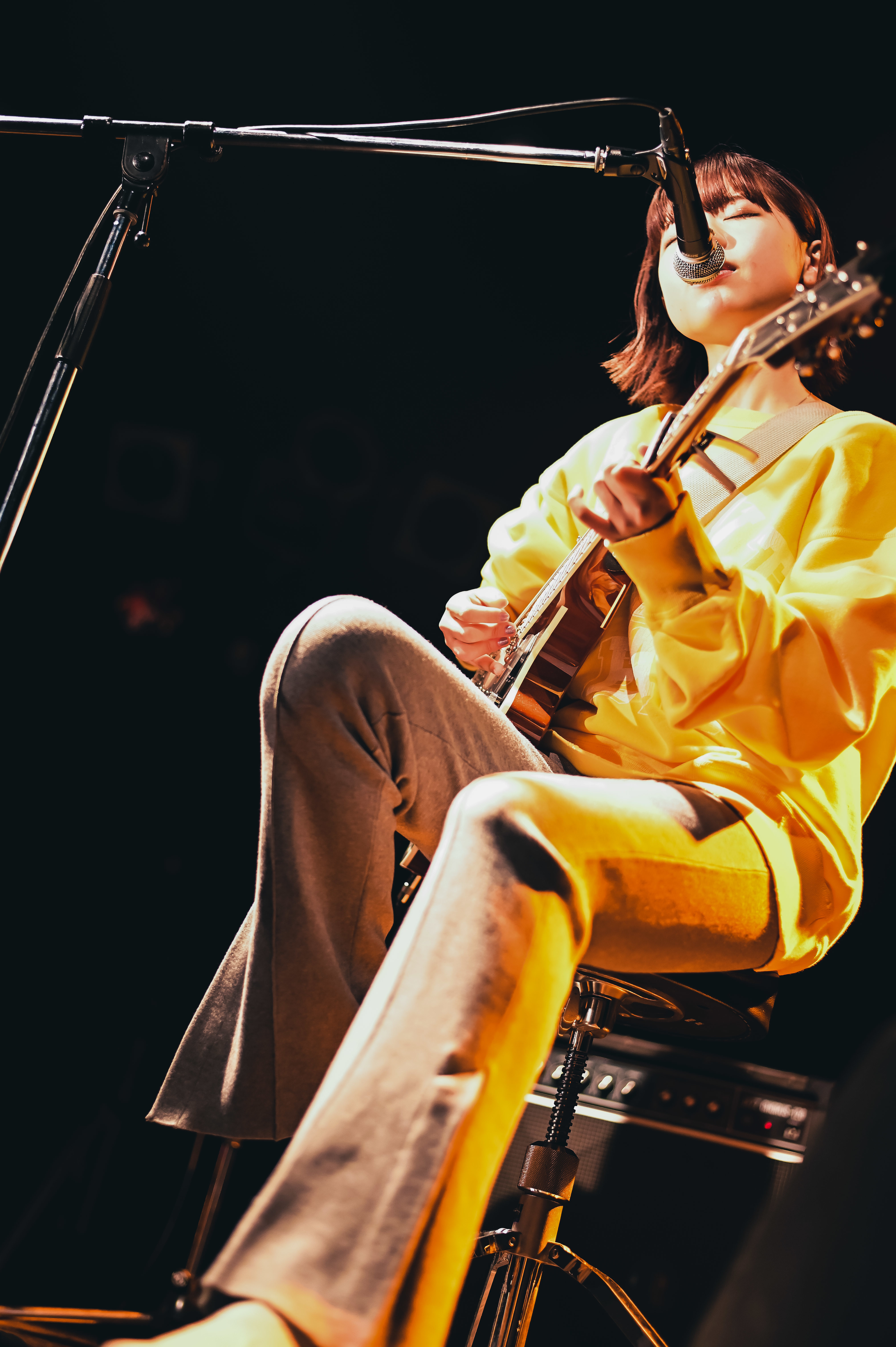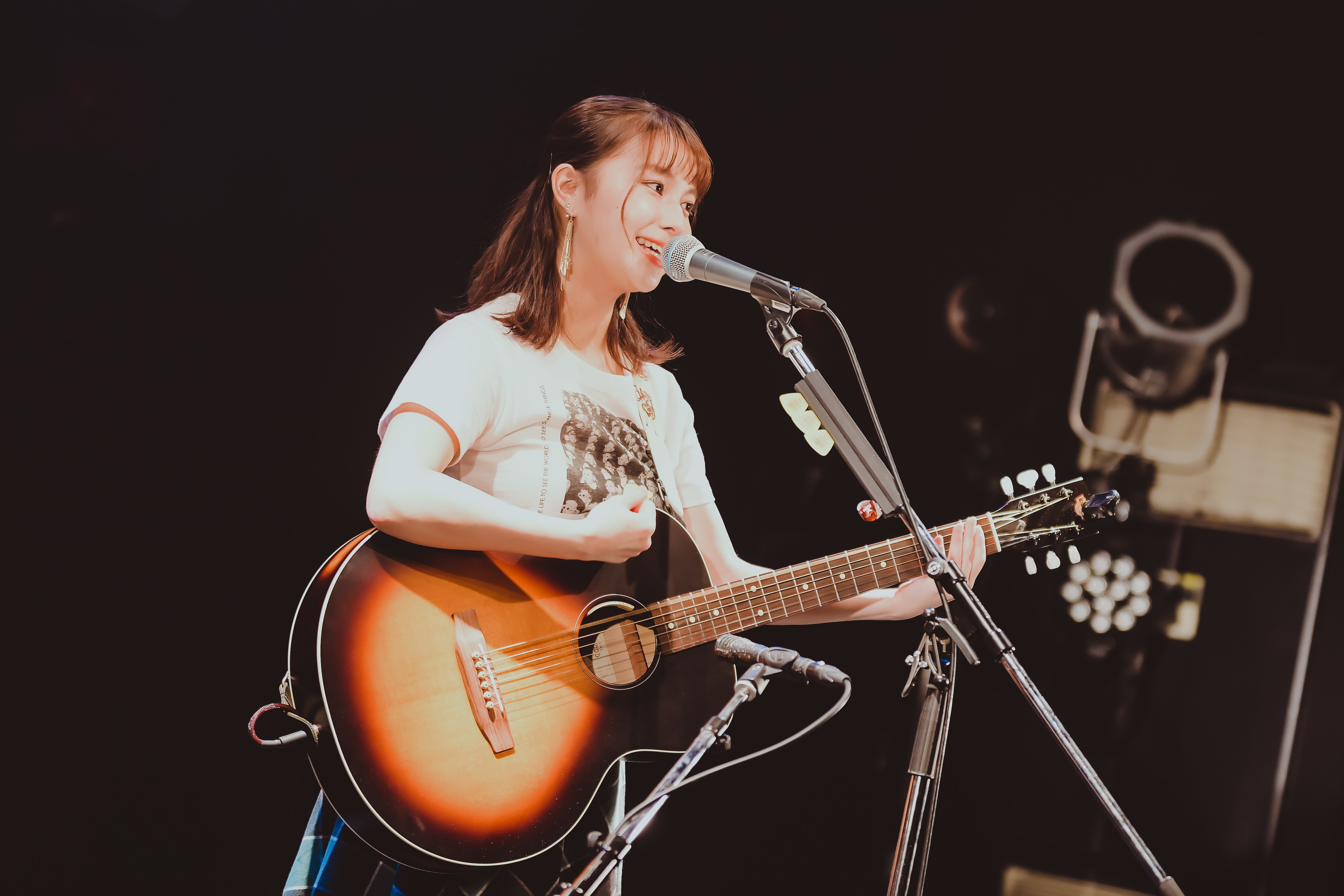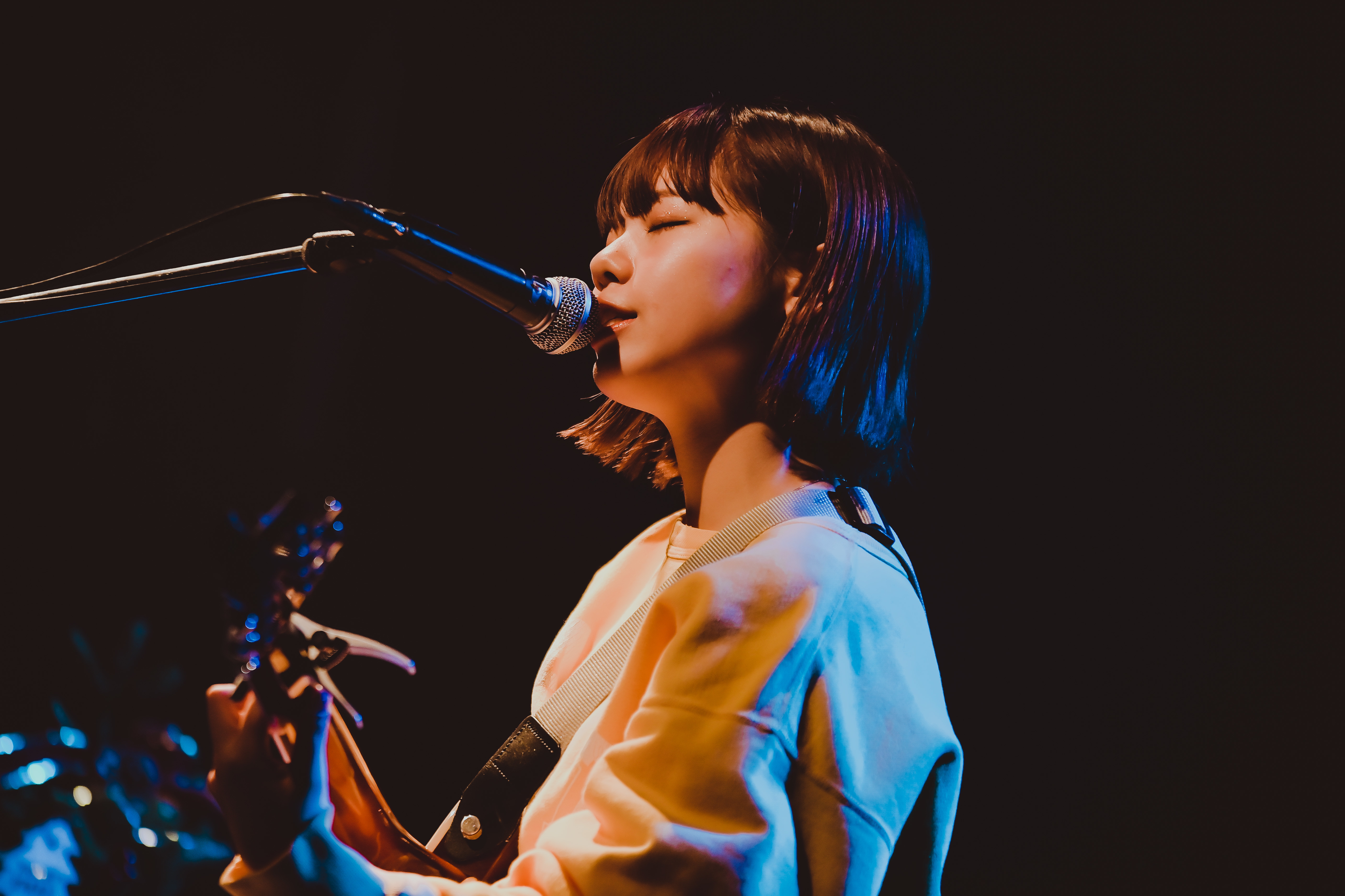 その厳かな空気を瞬時に塗り替えるように、イントロを奏でるだけで会場の温度を上げた「好-じょし-」へ。アコースティックでも曲の持つカラフルさは増すばかりで、この最上にポップな失恋ソングは同時に最上の応援歌でもあると気付かせてくれる。ジャンプし大きくギターをかき鳴らすキュートな姿でクラップを自然発生させつつ、「musician」でも勢いは止まらない! 「ライブが大好きで、ライブが一番自分の息がしやすい場所です。……(照れて)あー! 歌います!」と、まさに詞のとおり彼女の音楽がまぶしいほどオーディエンスを照らす。