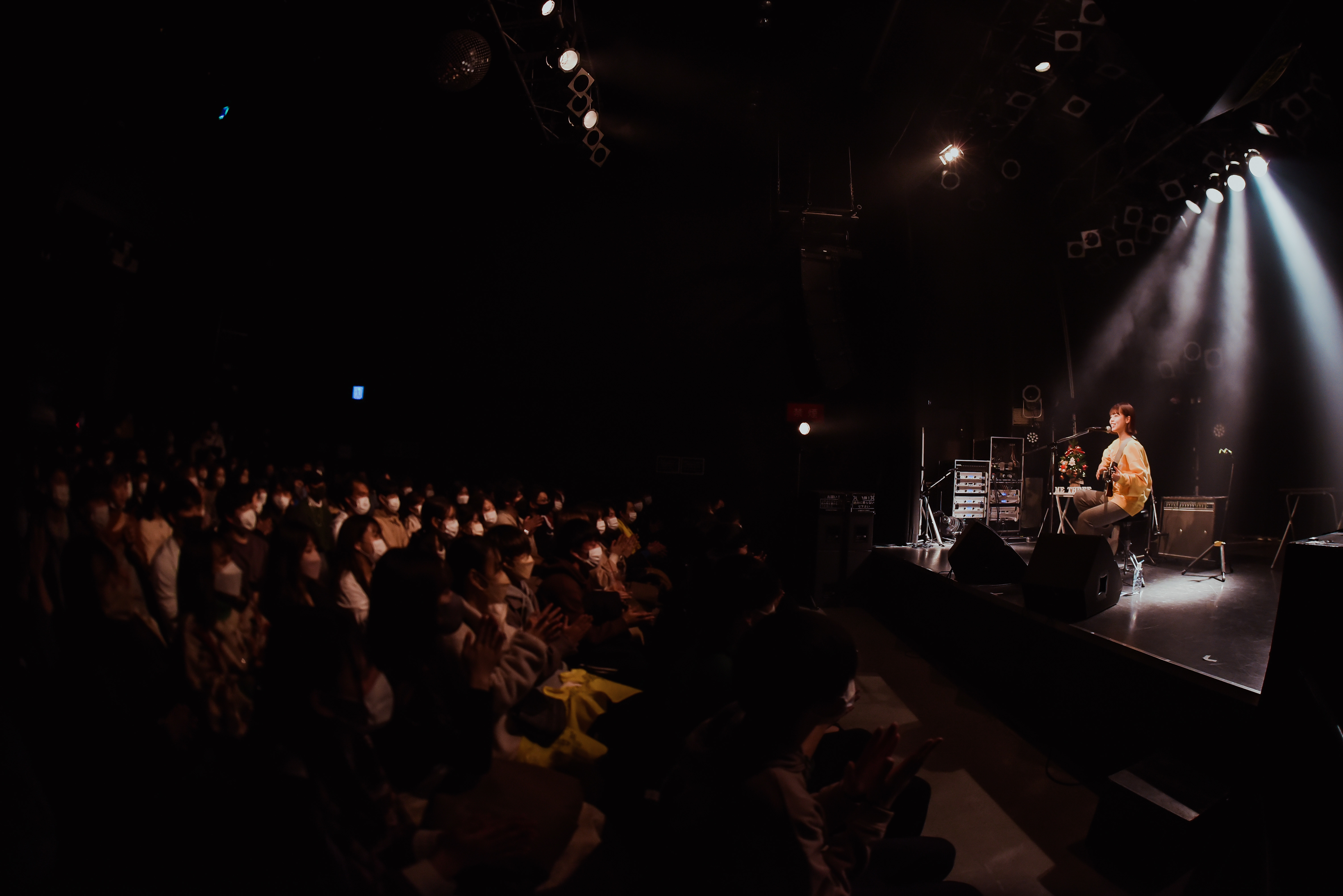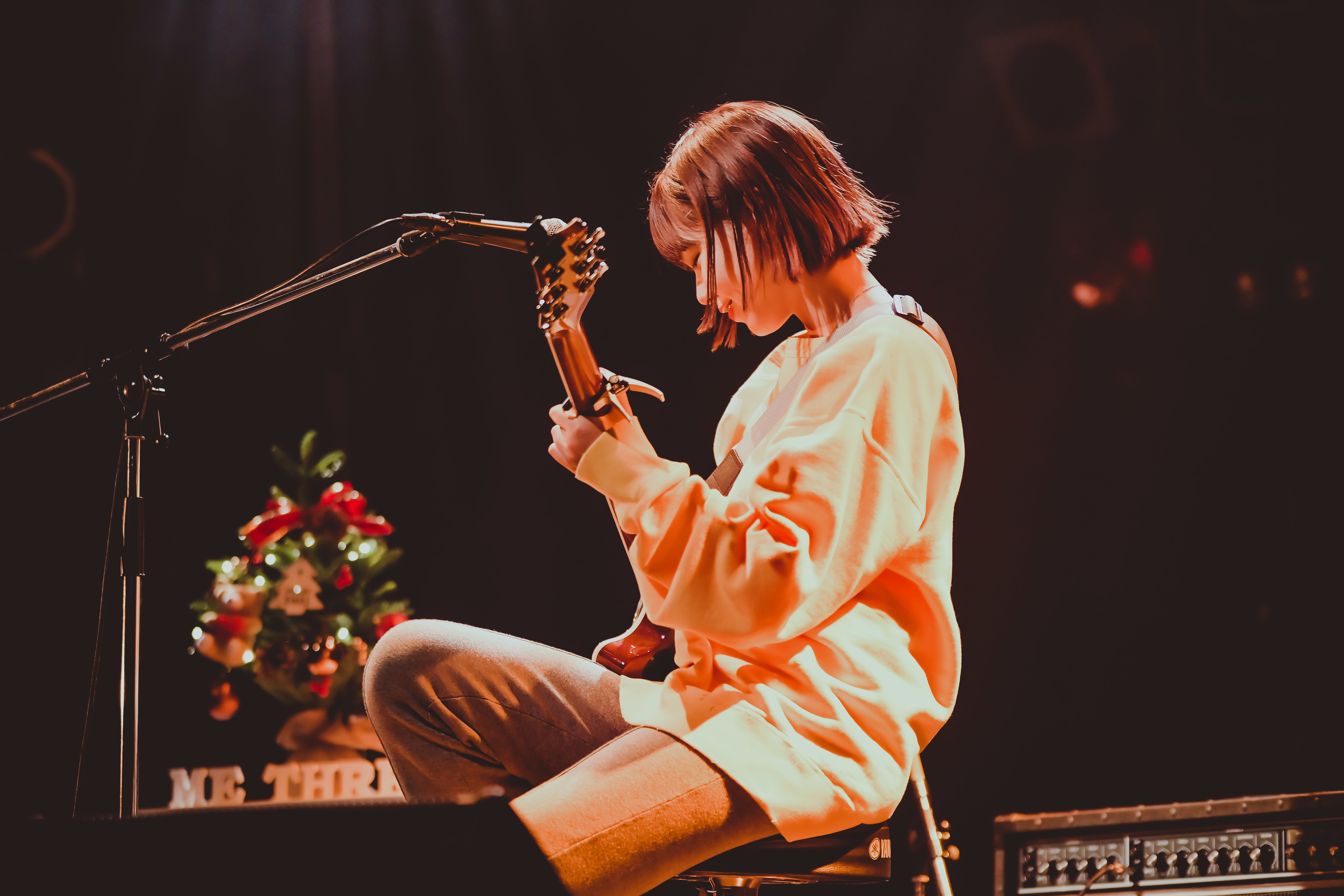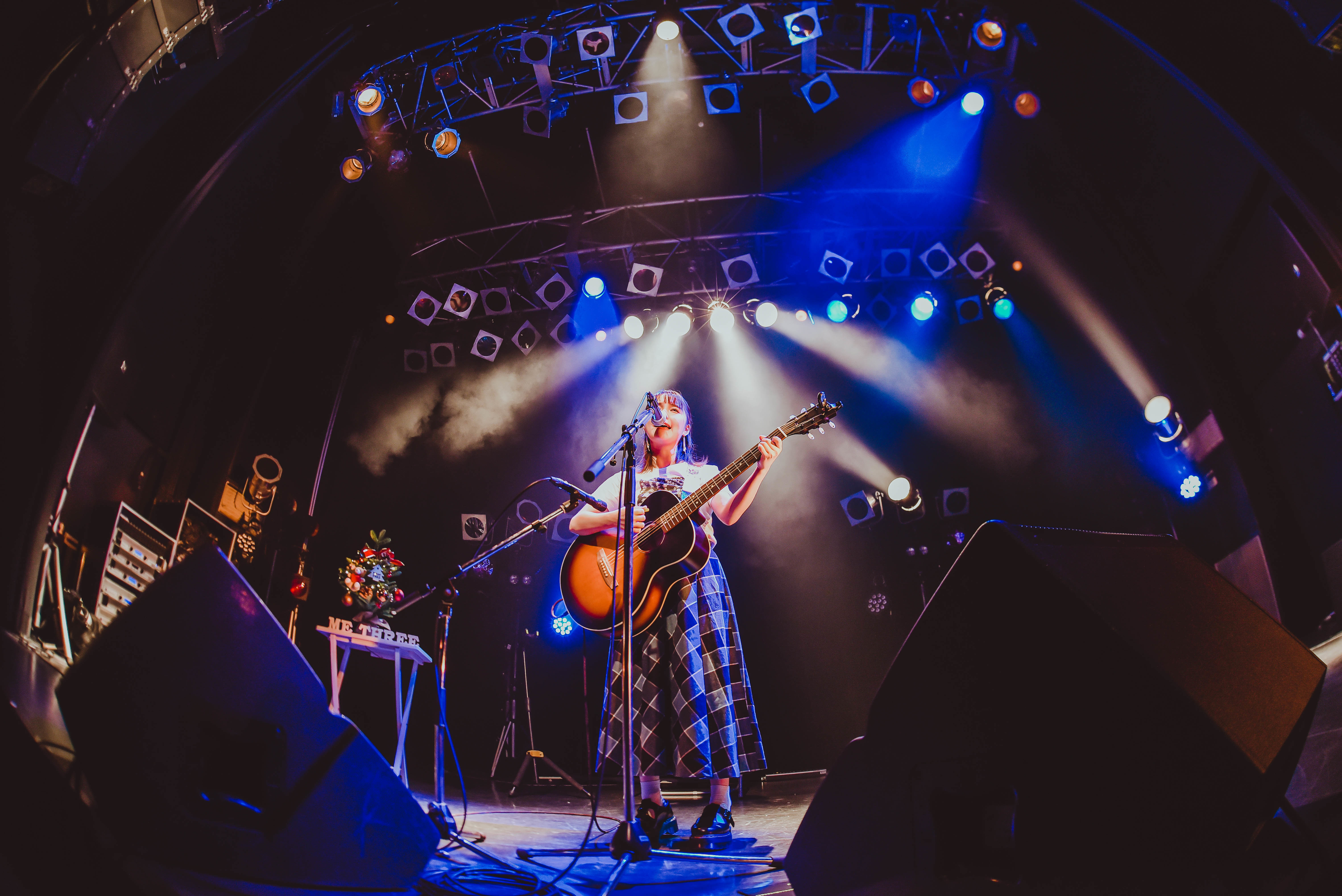 「改めまして、『me three!!』へようこそ。先程の「おはなし」という曲は、中3のときに初めて書いた曲なんです。ココ、ROCKTOWNで『十代白書』という音楽のコンテストがあって、その時もこの曲を歌ったなと。今のようにコロナなんかも存在しなかった当時の景色が浮かんできて……。しかも自分にとって今日は年内ラストライブ、さらに言うと大好きなasmiちゃんとのステージやし、すごく思い入れのあるライブになるんやろうな、いや、もうなってるなと思いながら歌ってます」