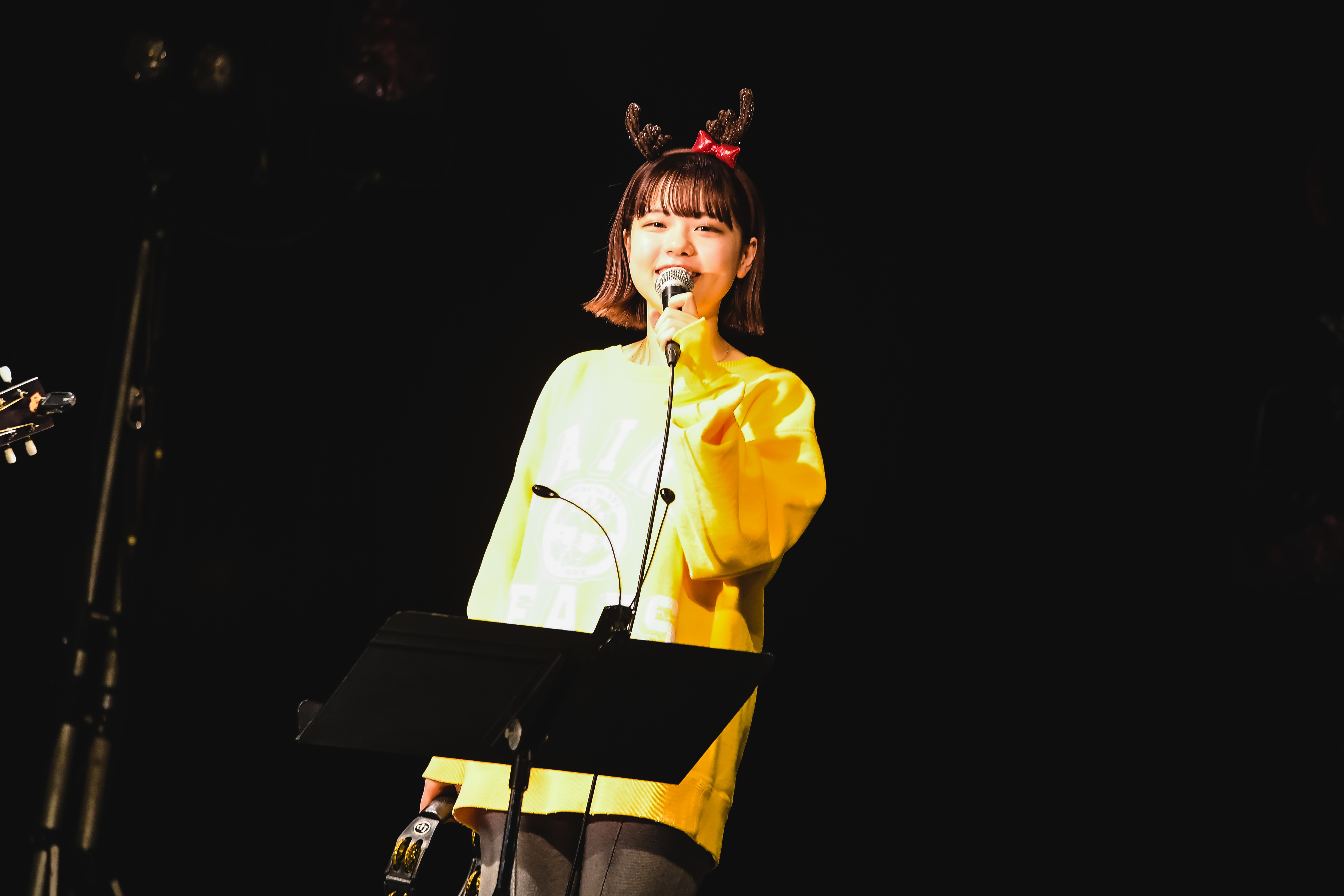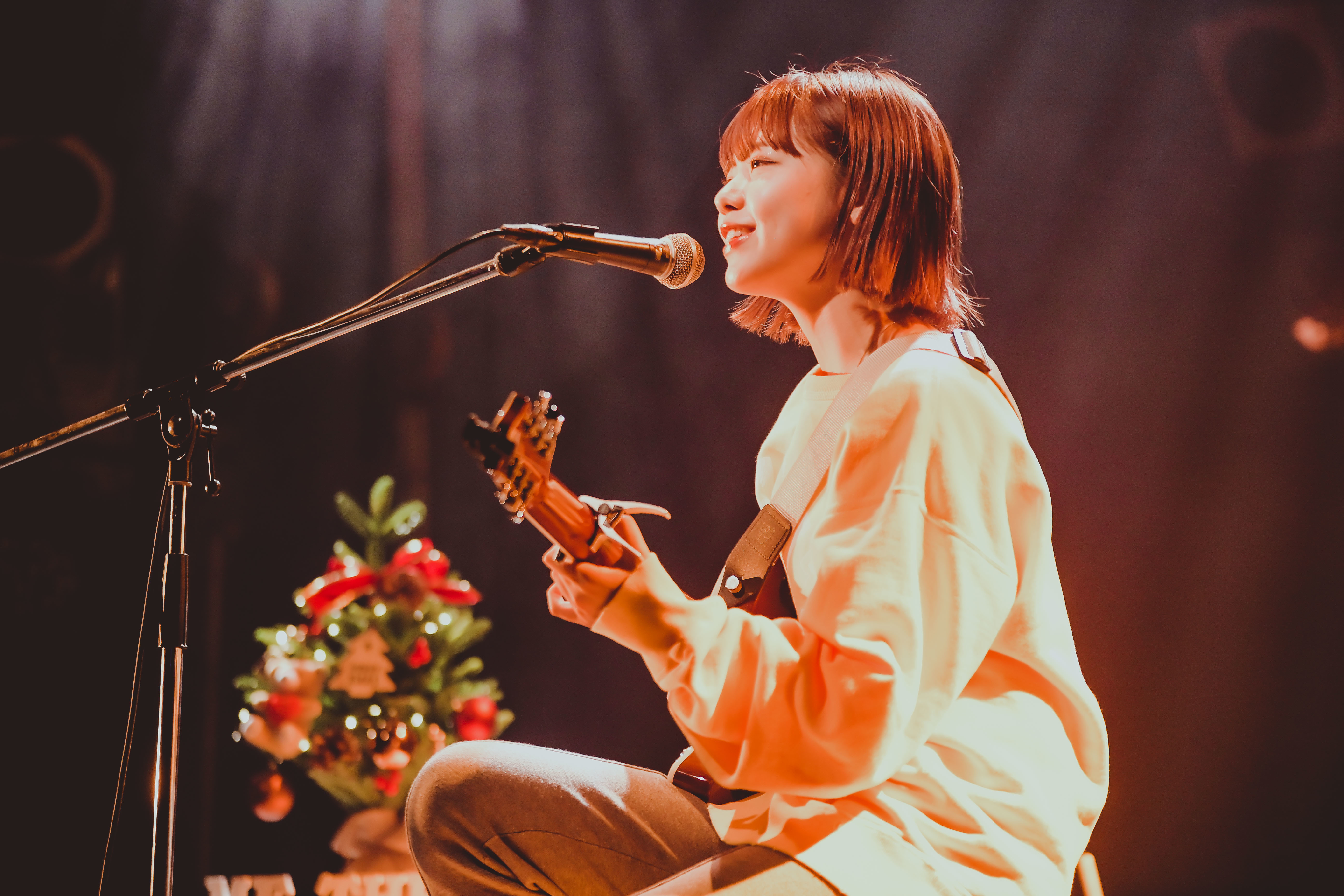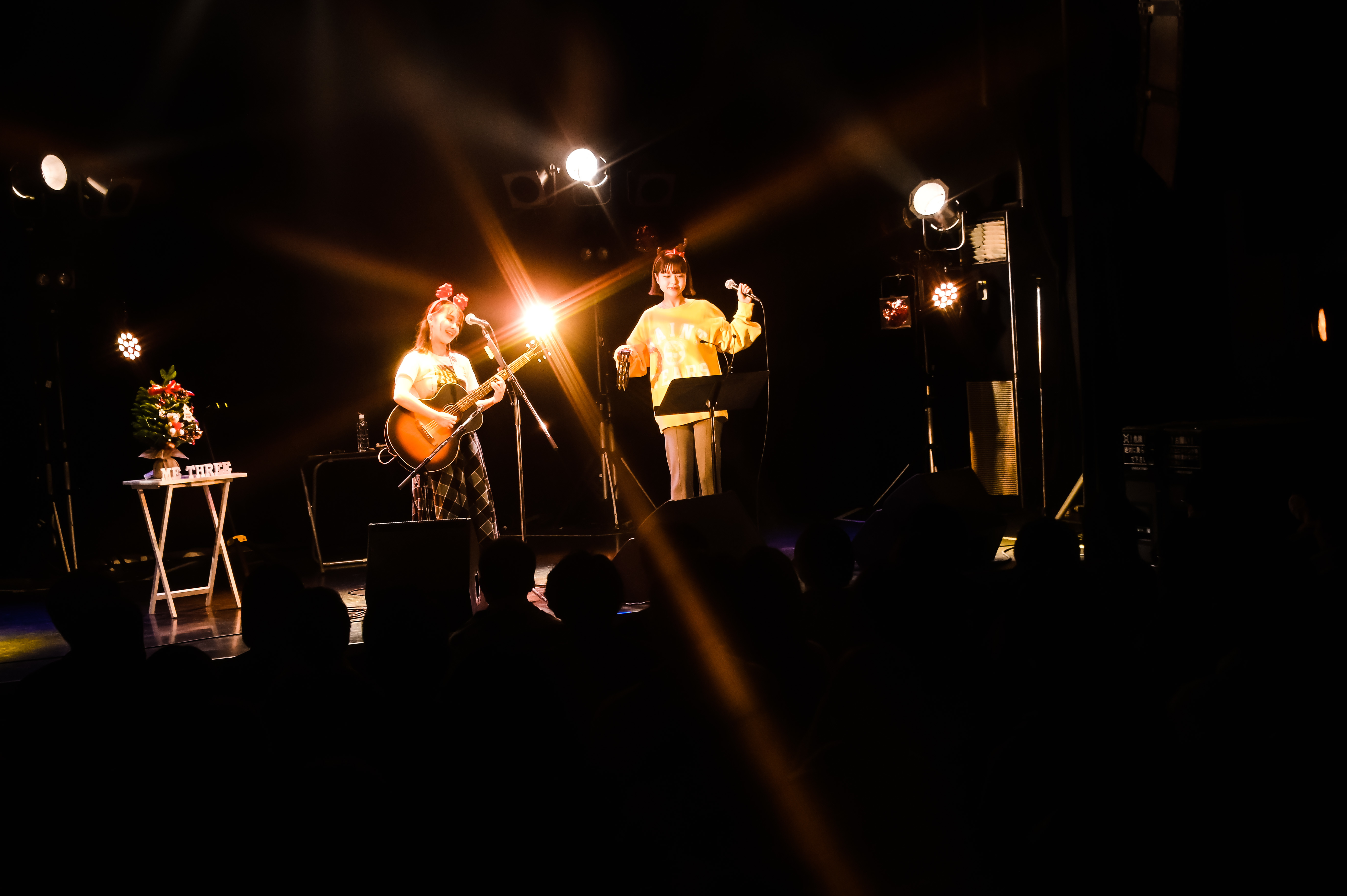 「改めまして、『me three!!』へようこそ。先程の「おはなし」という曲は、中3のときに初めて書いた曲なんです。ココ、ROCKTOWNで『十代白書』という音楽のコンテストがあって、その時もこの曲を歌ったなと。今のようにコロナなんかも存在しなかった当時の景色が浮かんできて……。しかも自分にとって今日は年内ラストライブ、さらに言うと大好きなasmiちゃんとのステージやし、すごく思い入れのあるライブになるんやろうな、いや、もうなってるなと思いながら歌ってます」