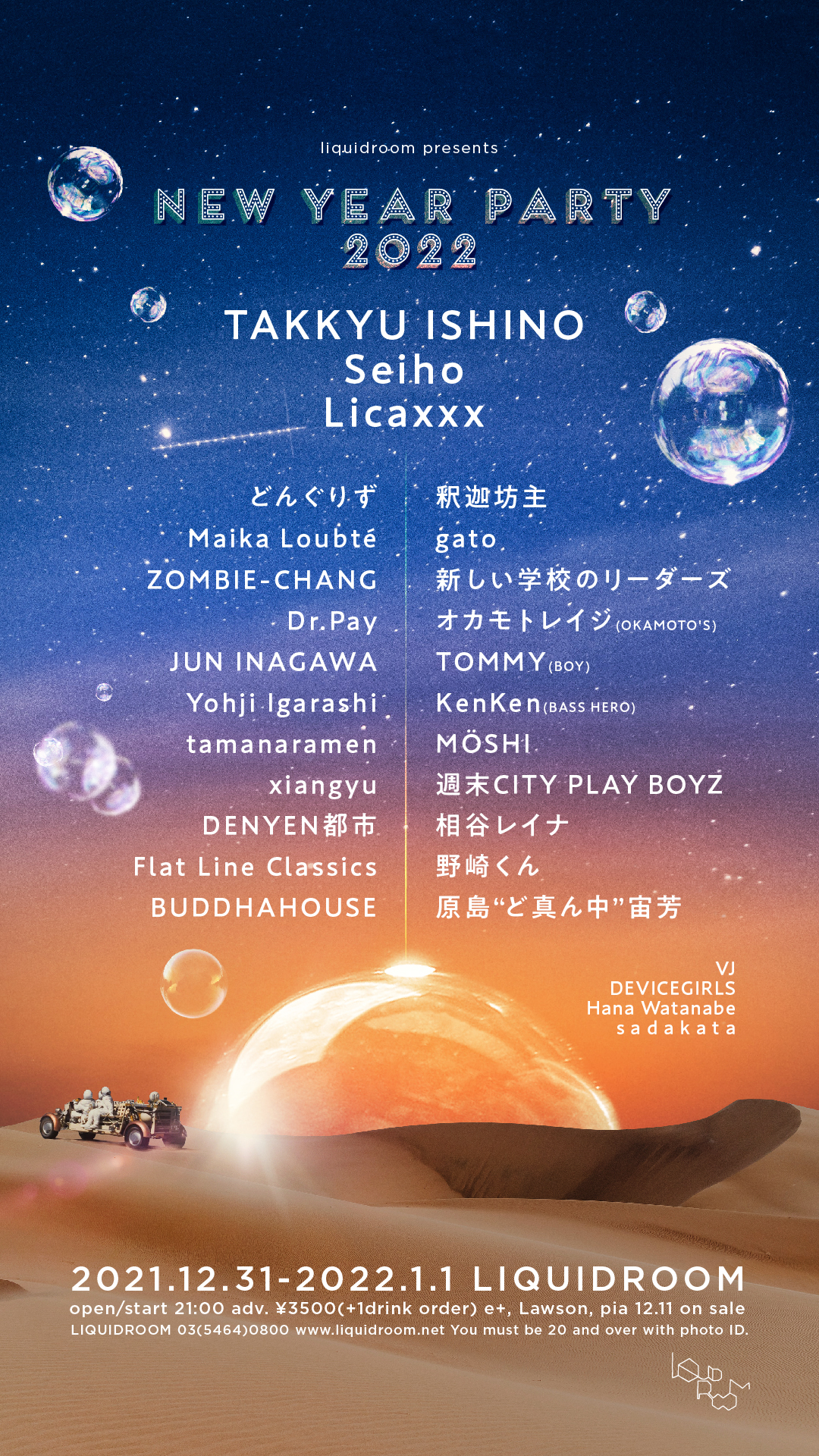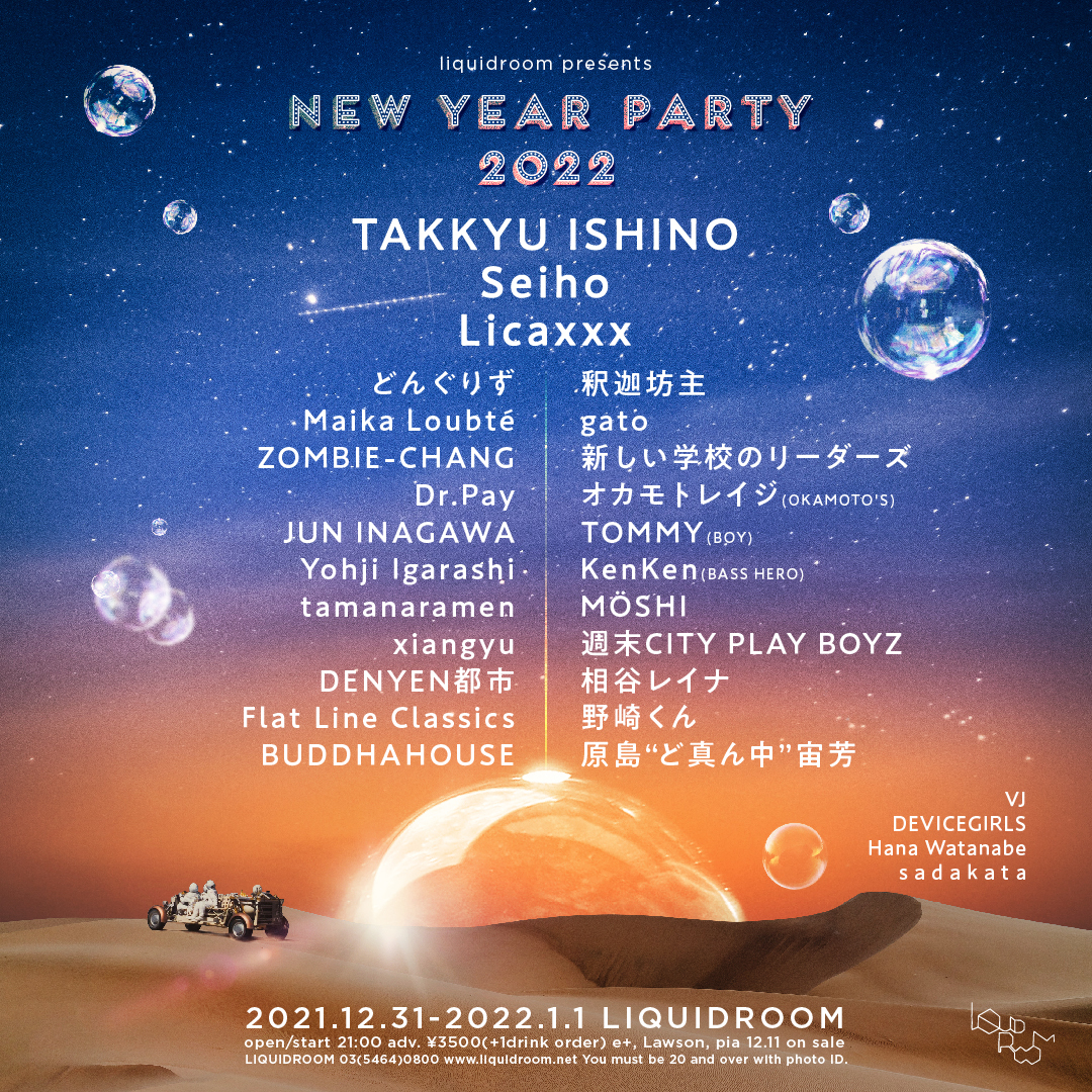 LIQUIDROOMのイヤーエンド・パーティが2年ぶりにカムバック。コロナの大混乱のなかで迎えた2021年にさよならを、新たな音楽との出会いを希望に2022年を迎えるパーティ。前回発表の、石野卓球をはじめとしたメンツととともに、今回は余すことなく、ずら~~っと発表です。