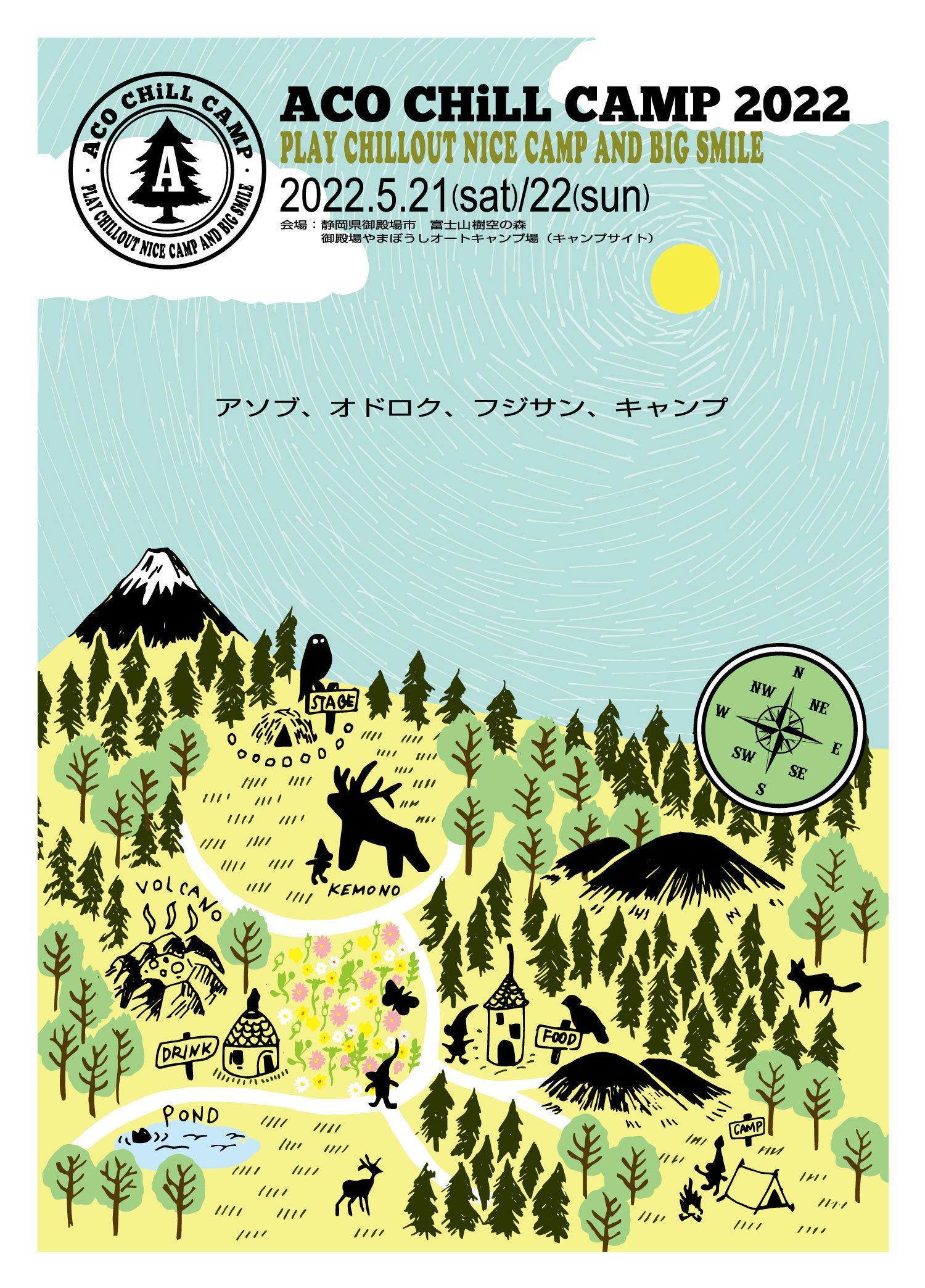 2022年5月21日(土)と5月22日(日)の2日間、静岡県御殿場市「富士山樹空の森」にて『ACO CHiLL CAMP 2022 ~アソブ、オドロク、フジサン、キャンプ。~』が開催されることが発表となった。