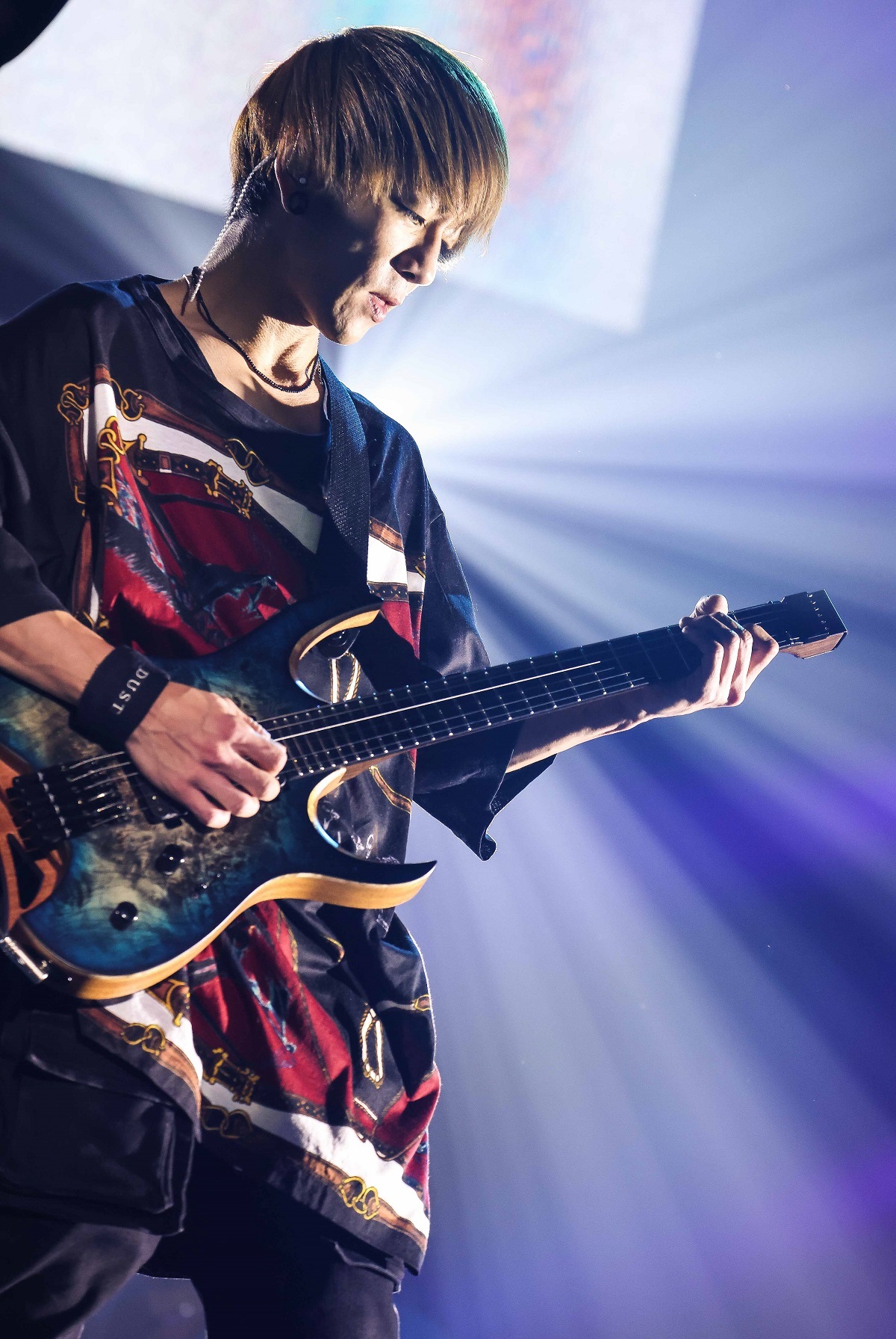 たとえば、5曲目の「AFTER LIFE」で観客がライトを点灯させたスマホを掲げ、歌詞の内容にふさわしいまばゆい景色を作ったとき、待ち受け画面が見えたことについて、「待ち受けがUVERworldじゃなかったらどうしよう? 他のバンドっぽかったらさっと目を逸らす(笑)」と言ってみたり、前述した10kmランニングにオンライン参加したファンの1人が30分43秒という驚異的な記録を出したことに本気で悔しがり(TAKUYA∞たちは47分だったそうだ)、「ふざけんな! マジで速い! それさえも誇りに思う」と称えつつ、「でも、速さじゃない。(ランニングを続ける)長さ、深さが大事なんだ」と負け惜しみも言ってみたり。さらには、ほぼ毎日、10kmのランニングを続けていることに対して、「健康のために走っているんじゃない。ダイエットのために走っているんじゃない。不安だから、夢を繋ぐためにできること全部やってるんだ」と本当なら隠していてもいい弱さを不意に曝け出したりするんだから、常に自分を律しながら、自らが信じる道を突き進んでいる、あのTAKUYA∞が!? そんなふうにちょっと面食らったからこそ印象に残ったのだが、同時にUVERworldが支持される理由は、こういうところなんだと筆者は改めて思い知らされたような気にもなったのだった。