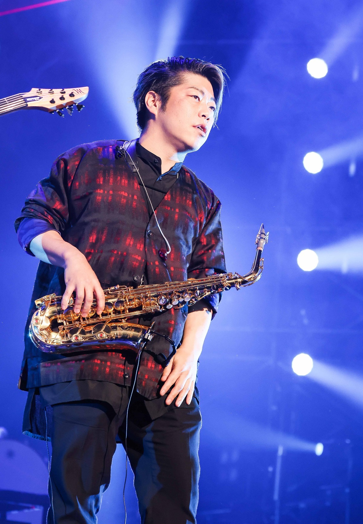 そして、6曲目の「AVALANCHE」からメインステージの中央にせり出した小さなステージで肩を寄せ合うように演奏していた6人がメインステージに戻ってからのラストスパートは、ラウドロック調のインストナンバー「Spreadown」でスタート。彰(Gt)、信人(Ba)、真太郎(Dr)、克哉、誠果(Sax)によるソロの応酬で、ぐっと盛り上げたところでTAKUYA∞が声をあげる!