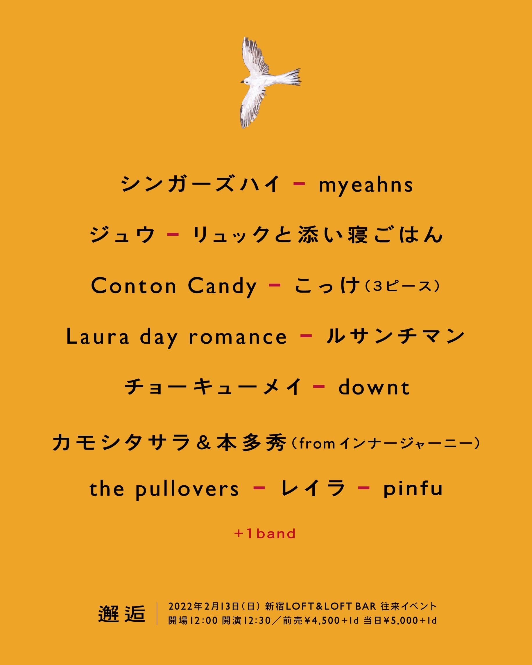 新進気鋭のミュージシャンが一同に会する『邂逅』が2022年2月13日に開催。出演アーティストはリュックと添い寝ごはん、myeahns、Laura day romanceら14組が決定した。チケットは12月29日(水)よりイープラスにて発売される。