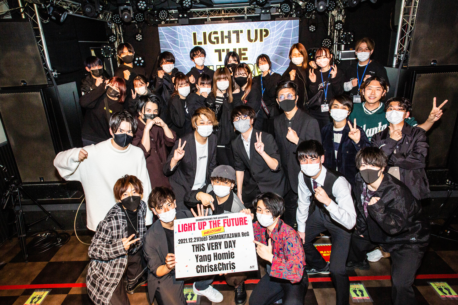 12月21日(火)下北沢ReGにて、Yang Homie、Chris&ChRiS、THIS VERY DAY の3組が出演するライブイベント『LIGHT UP THE FUTURE』が開催された。文化庁がコロナ禍を乗り越えるための文化芸術活動支援を目的に施行している「ARTS for the future!」の協力も受けて、開催されたこのイベント。コロナ禍を乗り越えた未来を明るい光で照らすべく、次世代を担う若き才能たちが集結! ジャンルの壁を越えて集まった3組は強烈な個性を放ち、音楽を通じて熱いメッセージを送り、明るい未来への希望を指し示した。