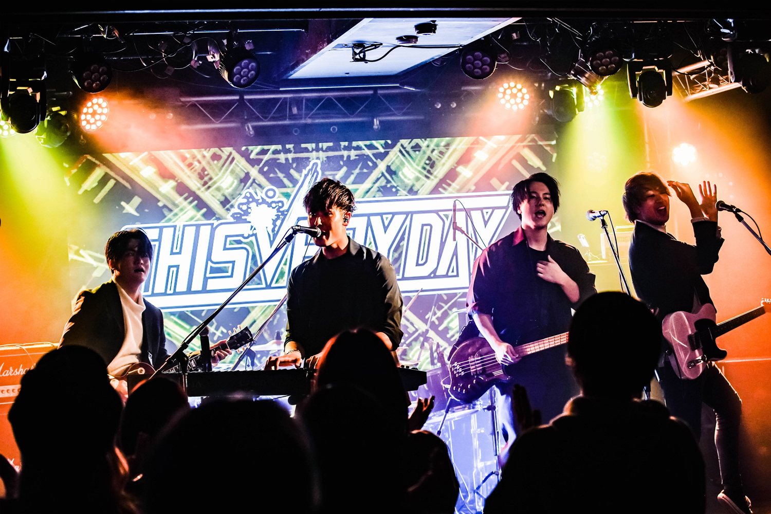 『LIGHT UP THE FUTURE』の大トリを努めたのは、THIS VERY DAY。印象的なギターイントロから、ピアノを含むバンドサウンドが圧倒的音圧を放つ「VICTORY」でライブが始まると、Yuji(Piano&Vo)のタフで美しいボーカルが、ヘヴィで強靭なサウンドの中で強烈な存在感を放つ。お~、カッコいい! ピアノを弾きながら歌う姿もカッコよければ、ハンドマイクでシャウトする姿もカッコいいという隙のないステージングで魅せるYuji。激しい演奏に掛け声も勇ましい「Loser」ではフロアに手拍子や心の合唱を煽り、観客の心を完全掌握。