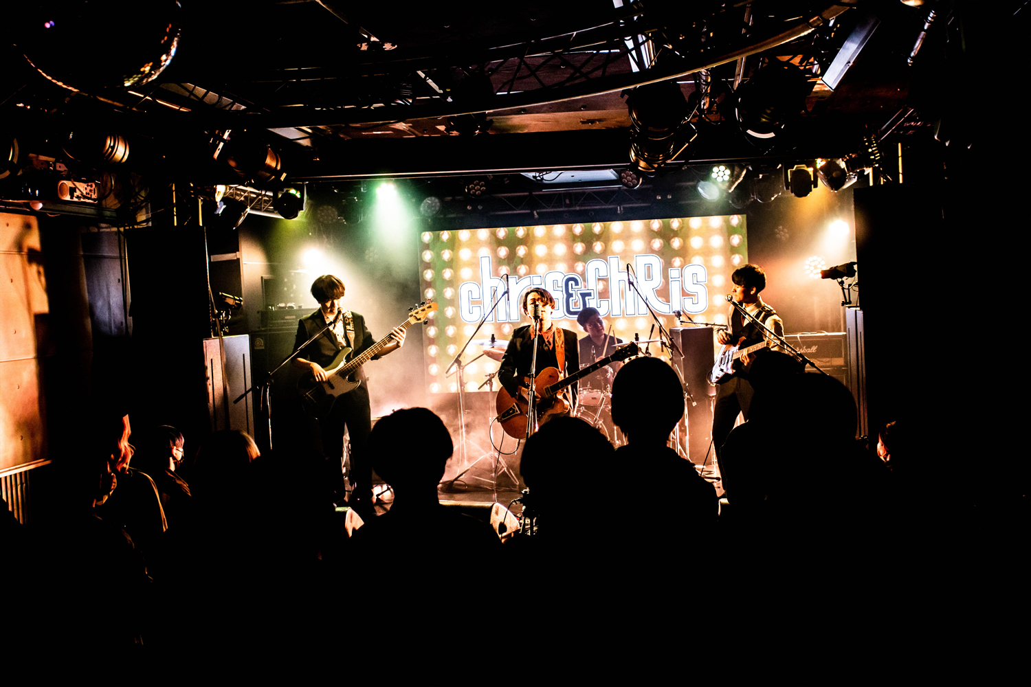 The Beatles「Rock and Roll Music」をSEに登場したのは、Chris & ChRiS。60~70年代のロックを中心に、ファンクやジャズ、ワールドミュージックの要素を取り入れた“ニューレトロ・ロックバンド”を自称する彼ら。スーツ姿でセミアコのギターを背負ったTAKUMI(Vo&Gt)がガイコツマイクに立って、「West coast」で雰囲気たっぷりにライブが始まると、タイトなバンドサウンドとクールな中に甘く色気ある歌声で会場の空気を一変させる。