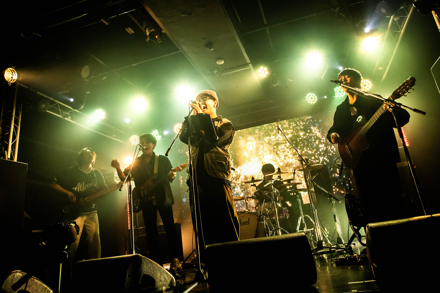 ゆったりと力強い演奏に乗せたワンジュ(Vo)のチベット語ラップには新鮮さと驚きがあったが、感情や心象風景を丁寧に描く、息の合った歌と演奏に1曲目から釘付け。「このまま」「Replay」とライブが続き、歌心あるボーカルとグッドメロディで魅了しつつ、しっかりリズムキープしながら独創的なフレーズで聴かせるリズム隊、卓越したプレイで楽曲世界を熱く切なく彩るツインギターと、演奏面でも前半戦からたくさんの魅せ場を作る5人。いいバンドだなぁ! MCでは「今年は色んなことに挑戦出来て、来年に向けての楽しみが増えました」と前向きに一年を振り返ると、「ここからは盛り上がって行きましょう! 全ての話は曲の中にあります」と始まった、熱く激しいダンスロック・チューン「GAIN」でフロアの熱を急上昇させる。