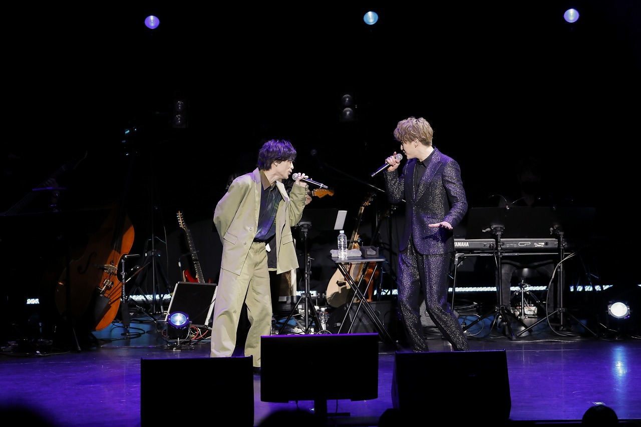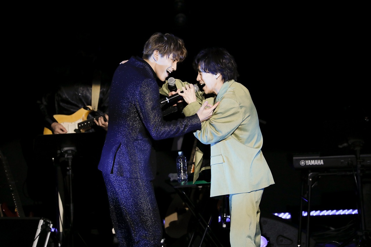コンサートがスタートすると、まずステージ上に現れたのは甲斐ではなく平間。弾けるような笑顔で「December 24th……」と歌い出し、2020年に開幕するも日程半ばで中止となってしまったミュージカル『RENT』より「Turn Up#1」を甲斐と共に熱唱。2020年の『RENT』でロジャーを演じた甲斐のコンサートゲストが同作でマークを演じていた平間ということで2人の歌唱を聴けるだろうと期待していたが、一曲目から客席のボルテージをMAXにする選曲にワクワクが高まる。