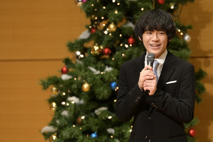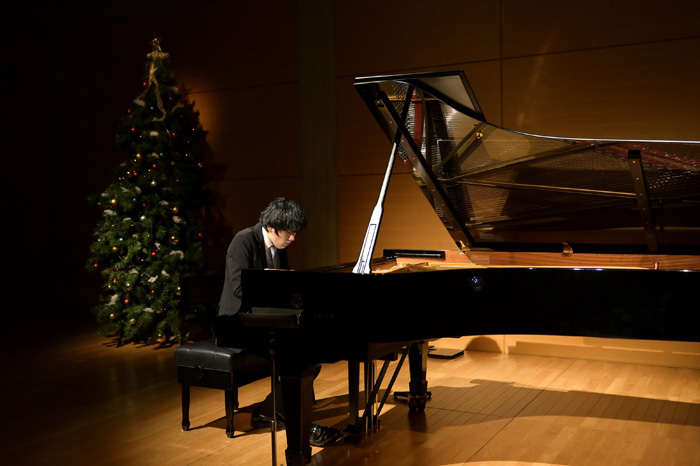 続いては亀井のソロピアノ演奏。ショパンの「スケルツォ第一番 ロ短調」。亀井は演奏前にこう語る。「激しさや、やるせなさ、そして怒りなどが凝縮された序奏と前半部分、その後に続く中間部の心洗われるような、和やかであたたかなクリスマスキャロルの旋律。そのコントラストを楽しんでいただけたらと思います」