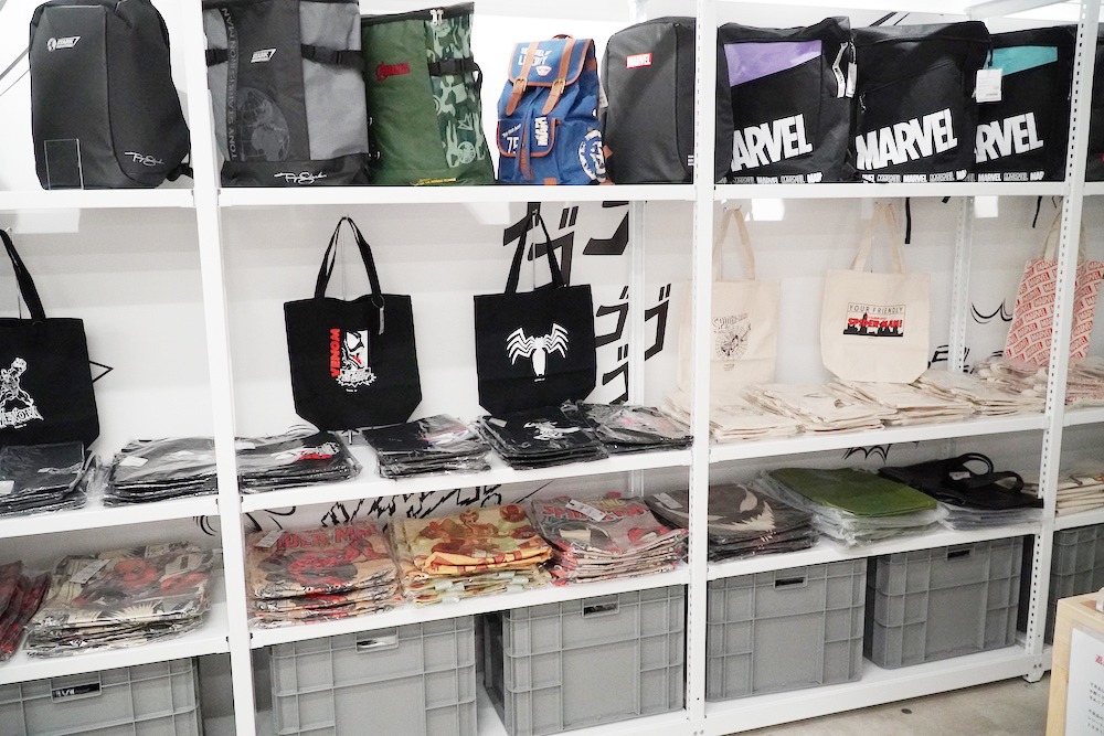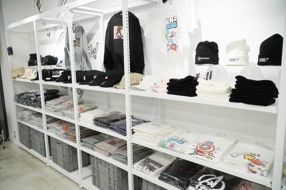 Tシャツや帽子などの衣類品のほか、トートバッグやリュック、ハンドタオルなど、日常づかいしやすい商品も多い。