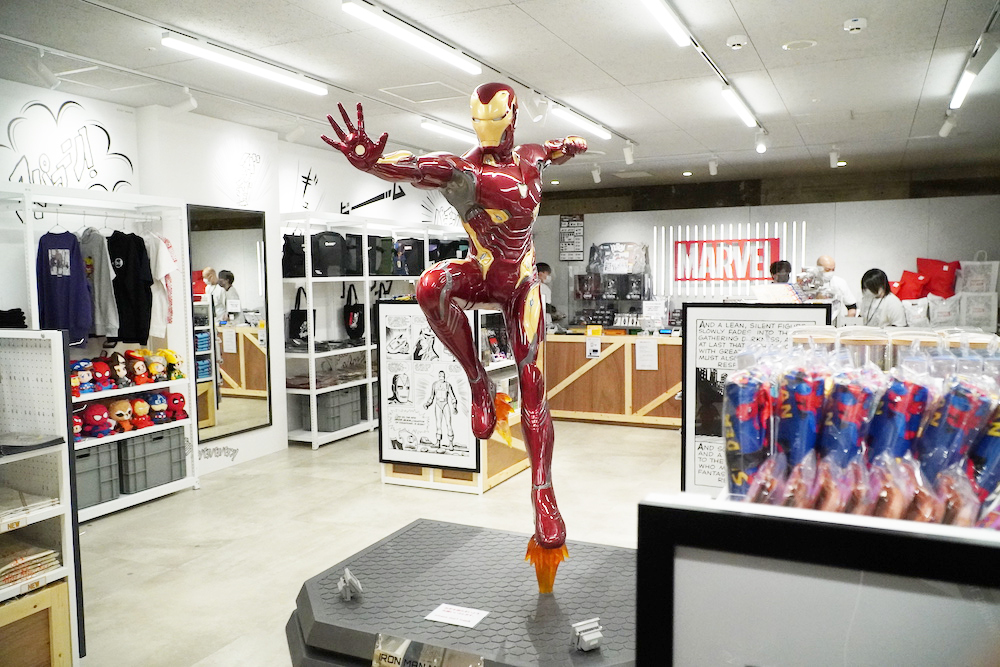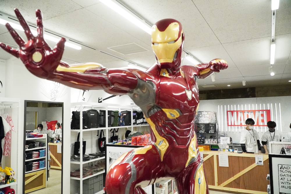 店舗の中央に君臨するのは、アイアンマンのスタチュー!