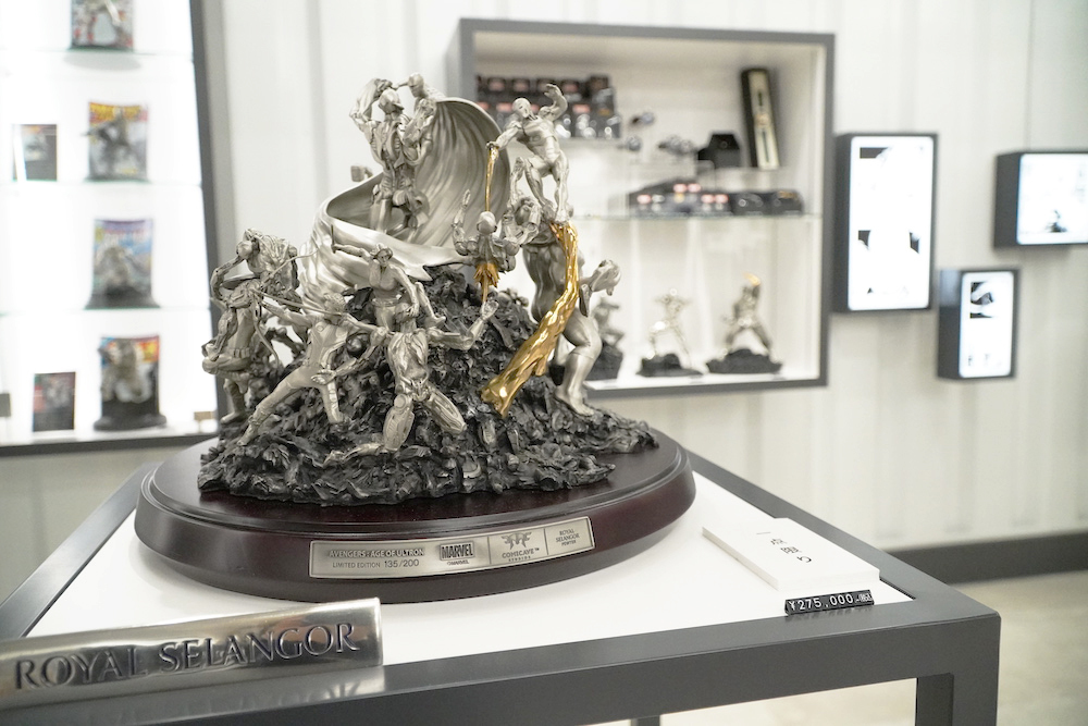 店舗奥では、ロイヤルセランゴール(Royal Selangor)が制作した『アベンジャーズ/エイジ・オブ・ウルトロン』のジオラマを発見! 世界に200体しかないうちの一点だそうだ。他にも多数のフィギュリンが鎮座しているので、なかなか手は出せない価格だけに、じっくり見て悩んで欲しい。