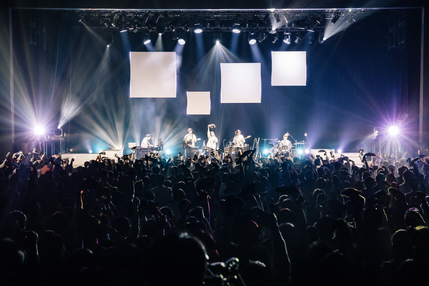 するとスクリーンには大都会の象徴ともいえるネオンサインが浮かぶ。そこに映し出された文字は「ロマンロン」。疾走感あふれるサウンドが奏でられ、そこに勢いよく歌声が乗る。会場はさらにヒートアップし、「ロマンロン」とシャウトするたびに湧き上がる。色とりどりに輝く大都会を歌で、身体で、表現しているかのようだった。ここからさらにギアが一段加速して披露されたのは「熾火」。客席はさらなる興奮に包まれ、宣言した通り「駆け抜ける」という言葉がしっくりと来る3曲の連続だった。