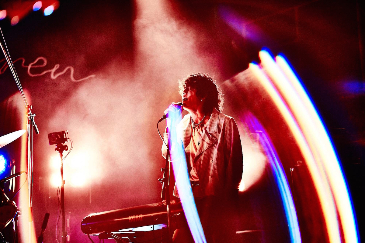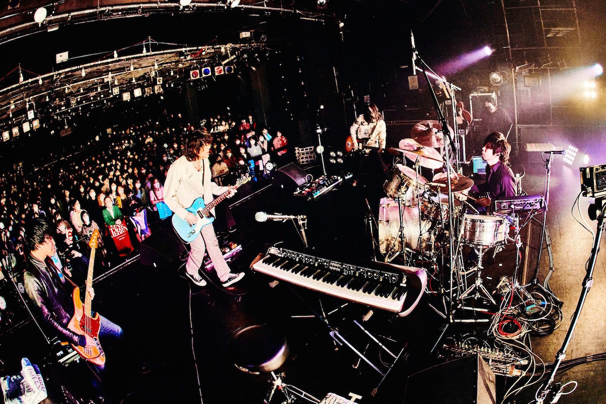 ここからグッとまた雰囲気を変え、「ホワイトライクミー」「New Clothes」と節目でリリースしてきた楽曲を披露していく。後者において、バンド名が煌々と灯る中で松本が叫んだ<今が正しい未来>という言葉には、改めて今日という1日を未来へ続けていく意思が見える。そしてグッと会場の雰囲気が変わり、一面が蒼の世界に変貌。「Water Lily」というラヴソングを、松本は時にはステージ上で座り込んでオーディエンスと同じ目線で歌い上げる。中原が絶妙なタイム感でグルーヴを引っ張ることで自由を得た松本が、柔和かつ囁くように歌う姿ーー突発的にデモ音源を発表するなど、いつだってリスナーを驚かせてきた彼ら。しかし、根底にあったのは最短距離で音楽を届けたいという想いだったことを象徴するようなワンシーンだった。そして、夜空のように深い蒼と星のような灯が美しいステージの上で、バンド屈指の名バラード「ベランダ」を美しき鍵盤の旋律と共に届け、このタームは終了した。