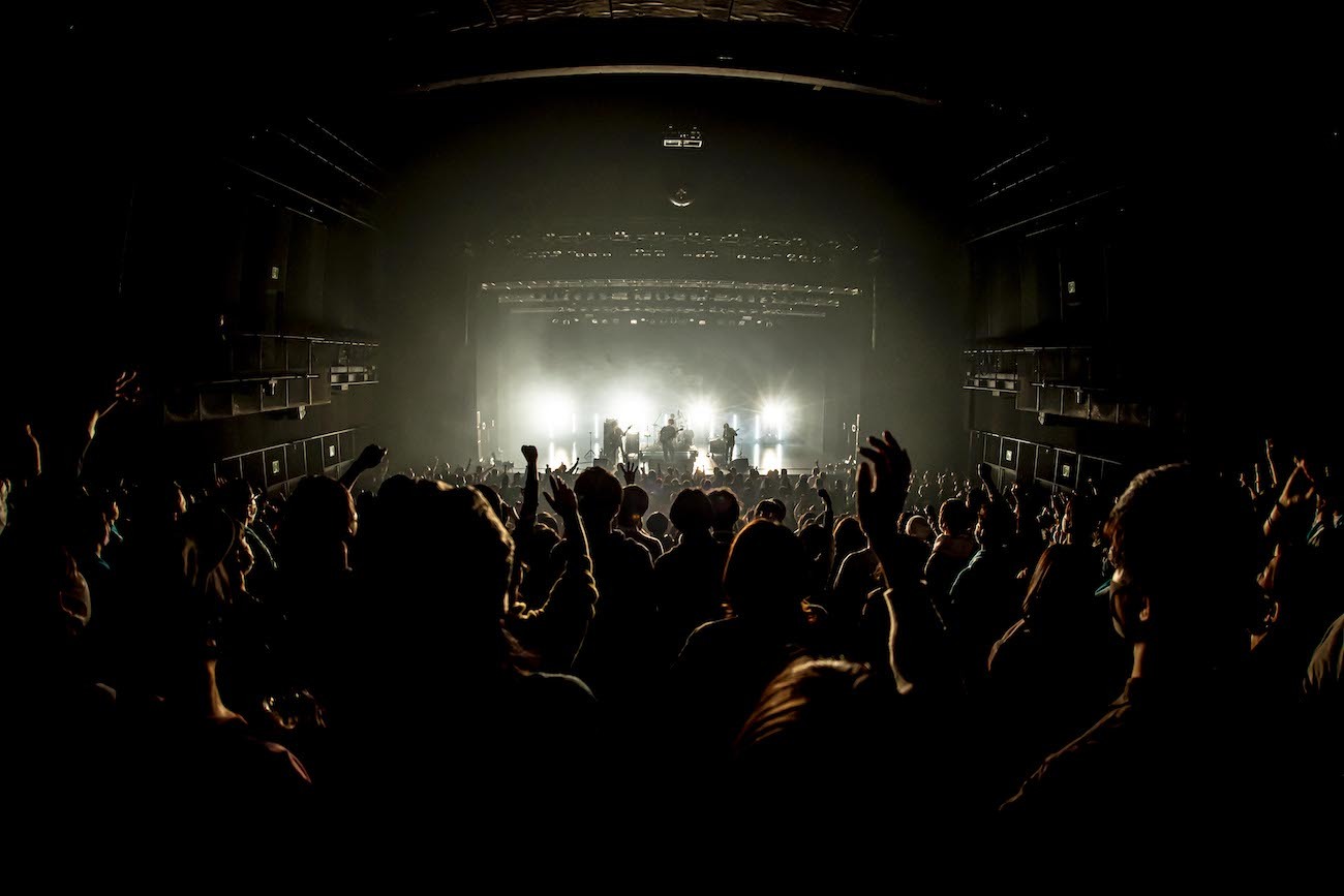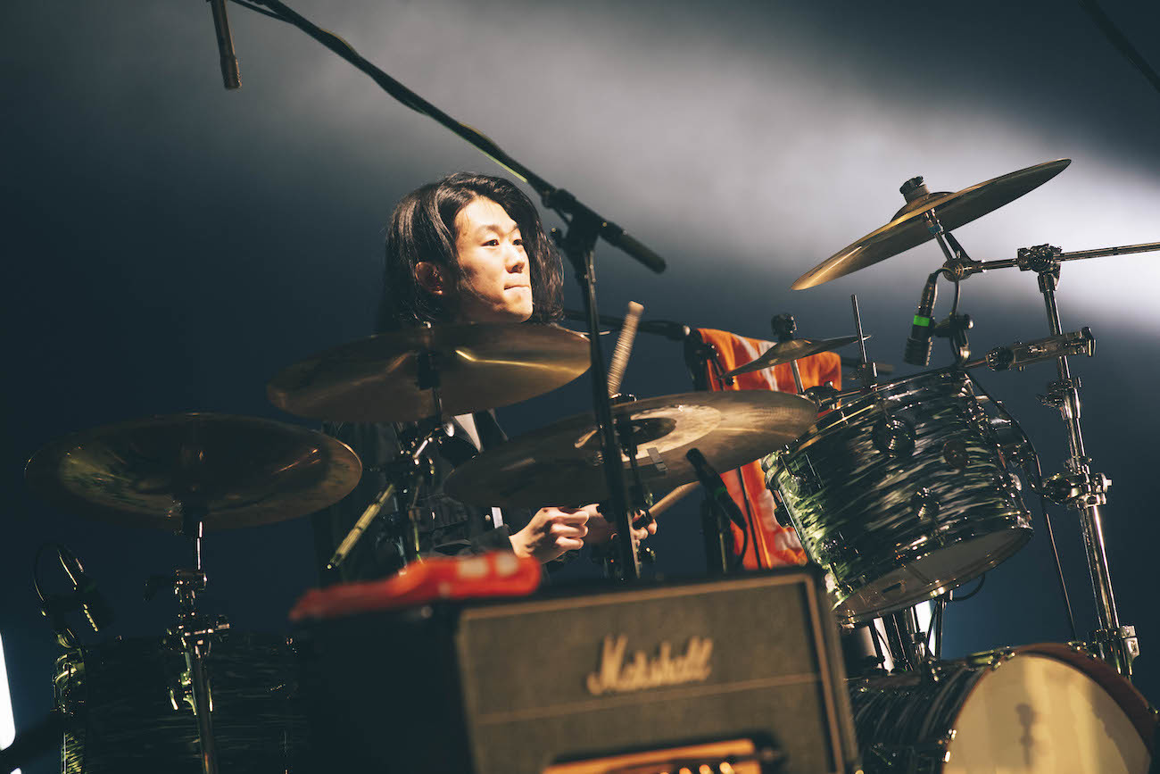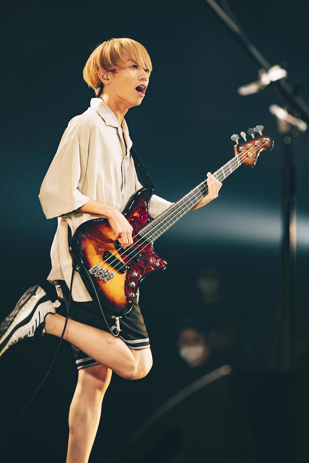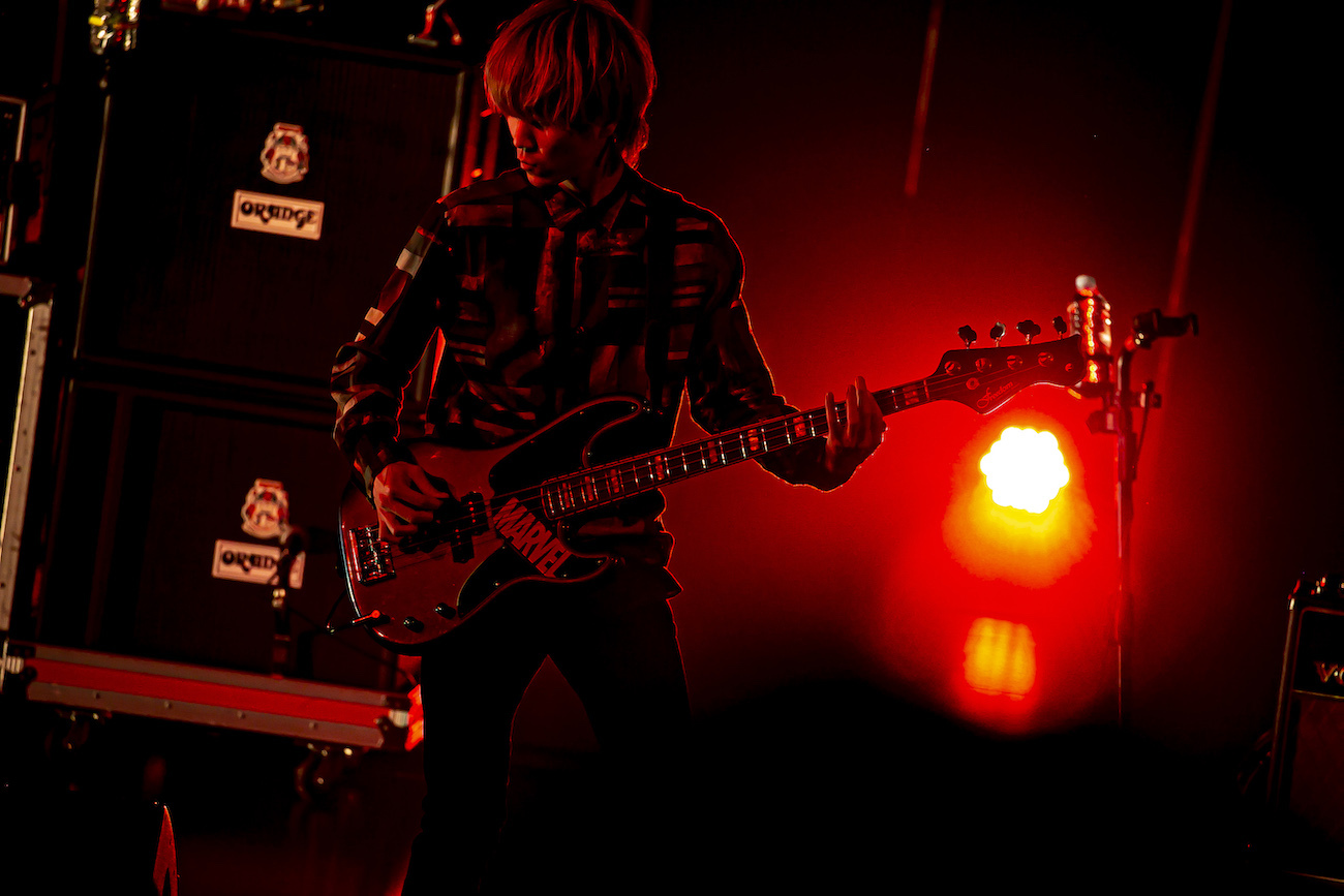 激しいライティングを浴びながら届けた攻撃型ロックンロール「ガチャガチャ」、天井から降り注いだ光がステージの床の光の模様を描いた8分の6拍子のロックバラード「名前」へと、アルバム『ギター』の楽曲を中心にライブは進んだ。ハンブレッダーズのライブは、たとえコロナ禍でなくてもコール&レスポンスを求めるタイプではない。ステージとフロアが「演者」と「観客」としているのではなく、人間と人間として向き合い、主人公にはなれない、光のあたらない場所にいる人たちの気持ちを代弁するような歌を届けていく。「今年の厄を落とすのに必要なものは知っていますか? ド派手なエレキギターがあればいいんです」。ムツムロが言い、最後に届けたのは「ワールドイズマイン」。<この世界はきっと僕らのものなのさ>という無敵感に満ちたフレーズを何の疑いもなく投げかける、ロックバンドのロマンがこれでもかと詰まったフィナーレだった。